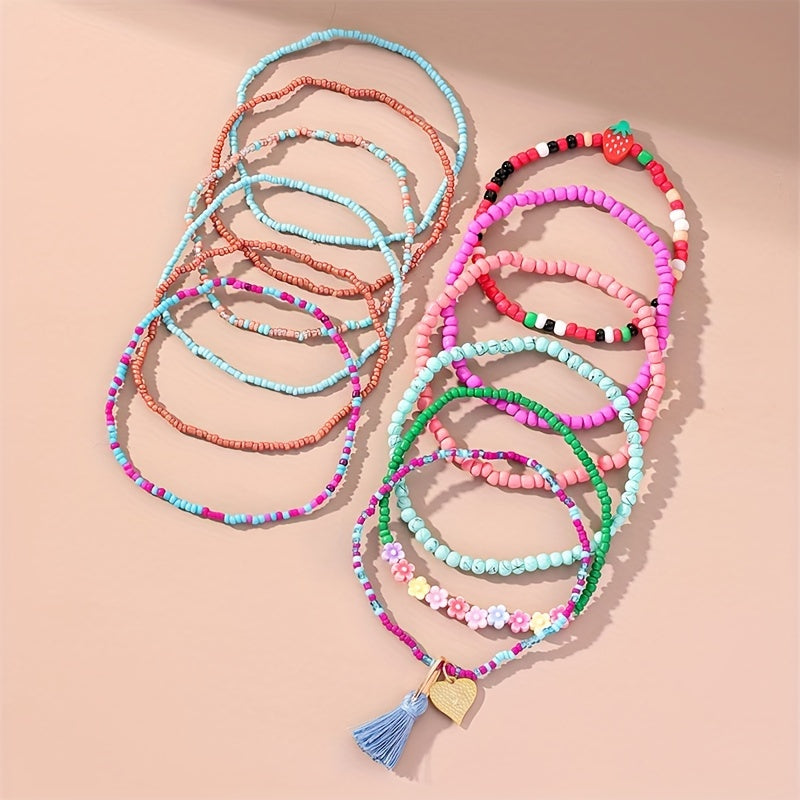 Add a touch of Y2K style to your summer look with this Bohemia beaded anklet set. Perfect for women and girls who love trendy accessories.