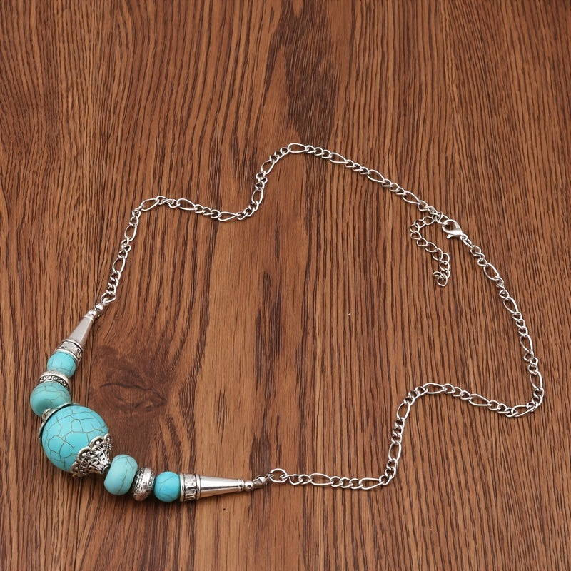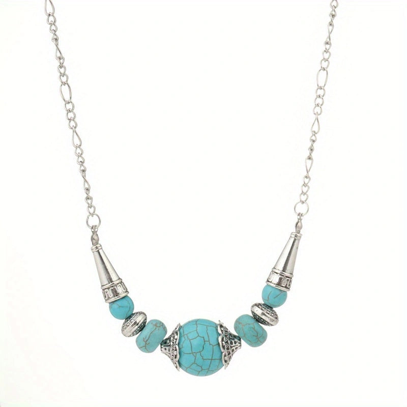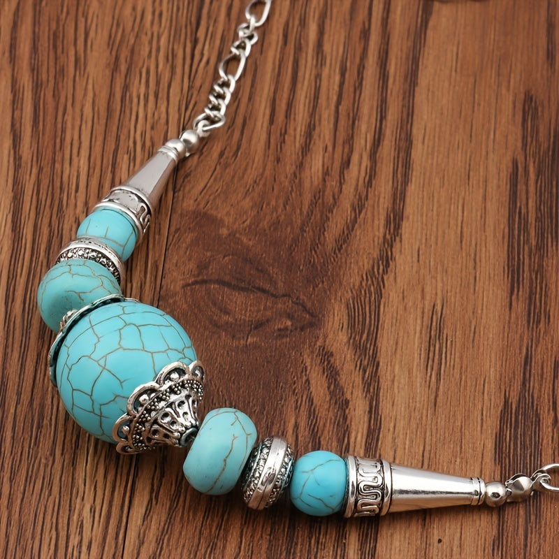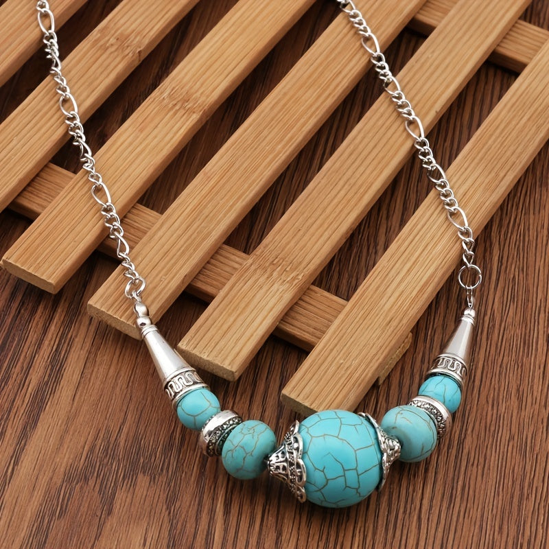 Add a touch of bohemian charm with this natural turquoise necklace. Made of 925 silver, this ethnic style necklace is perfect for women and girls.