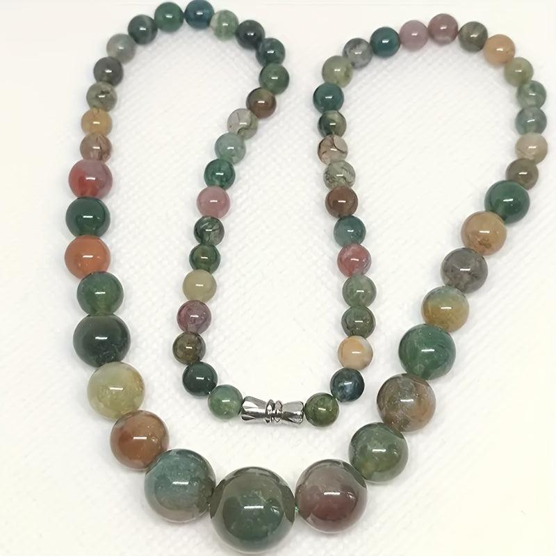 Add a touch of bohemian style with this necklace featuring multicolor marbled beads and an Indian agate pendant. Perfect as a gift for birthdays and anniversaries.