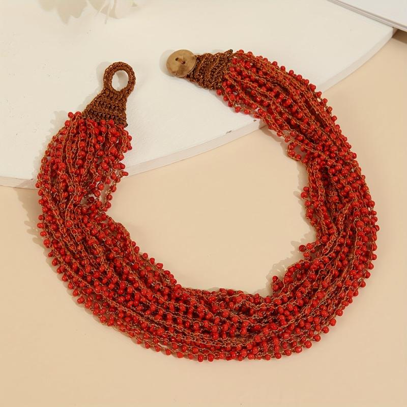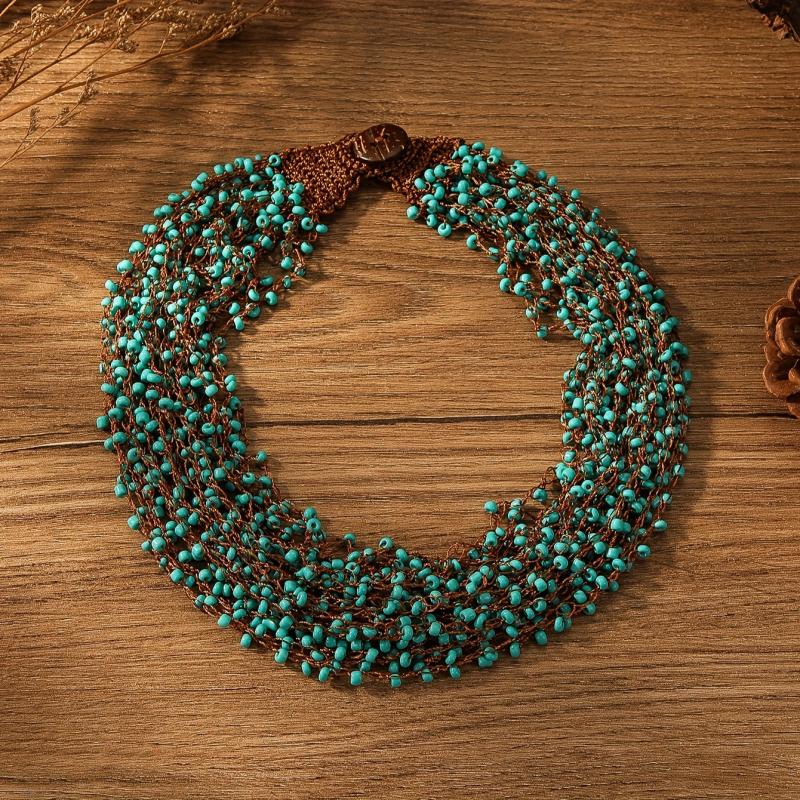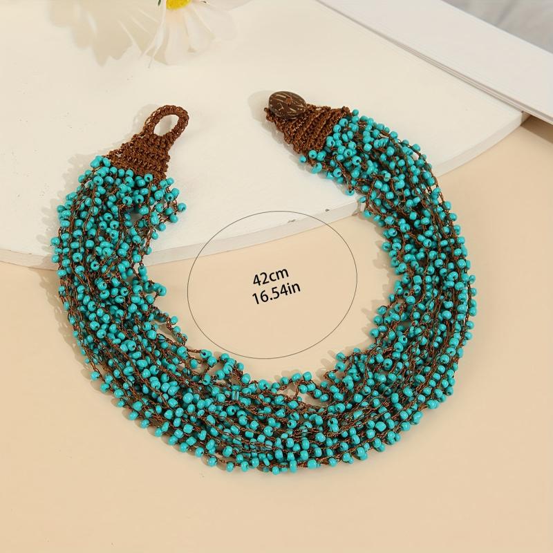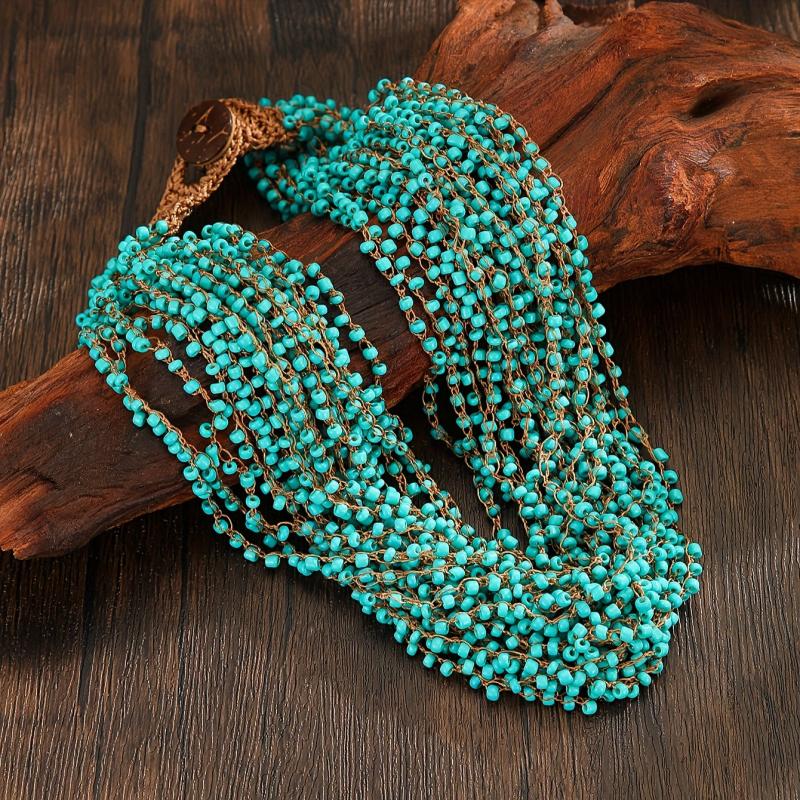 Elevate your style with this European and American hot item. This beaded crochet necklace doubles as a stylish scarf, perfect for a bohemian look.