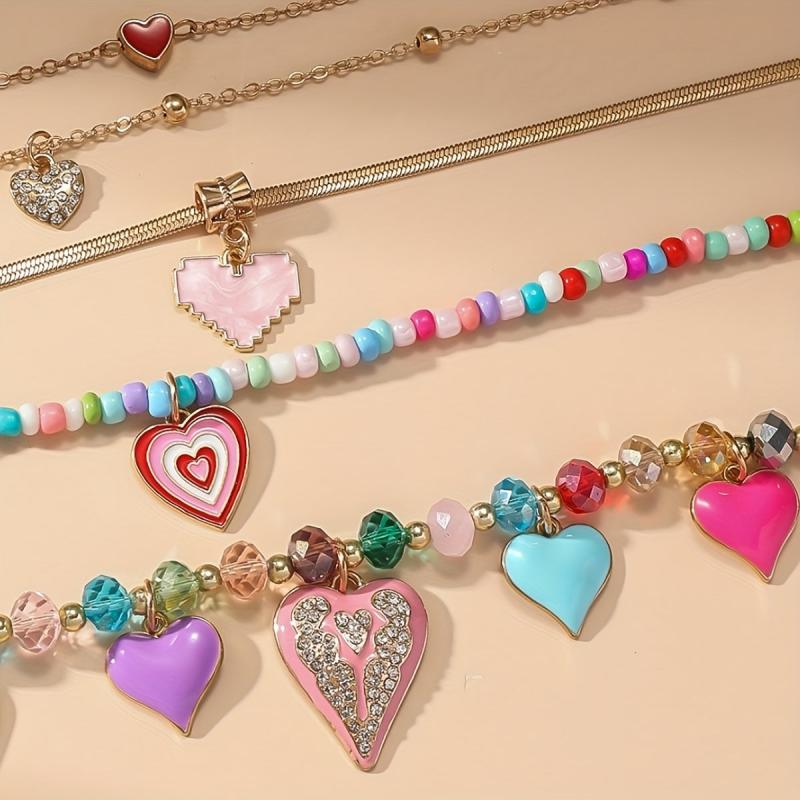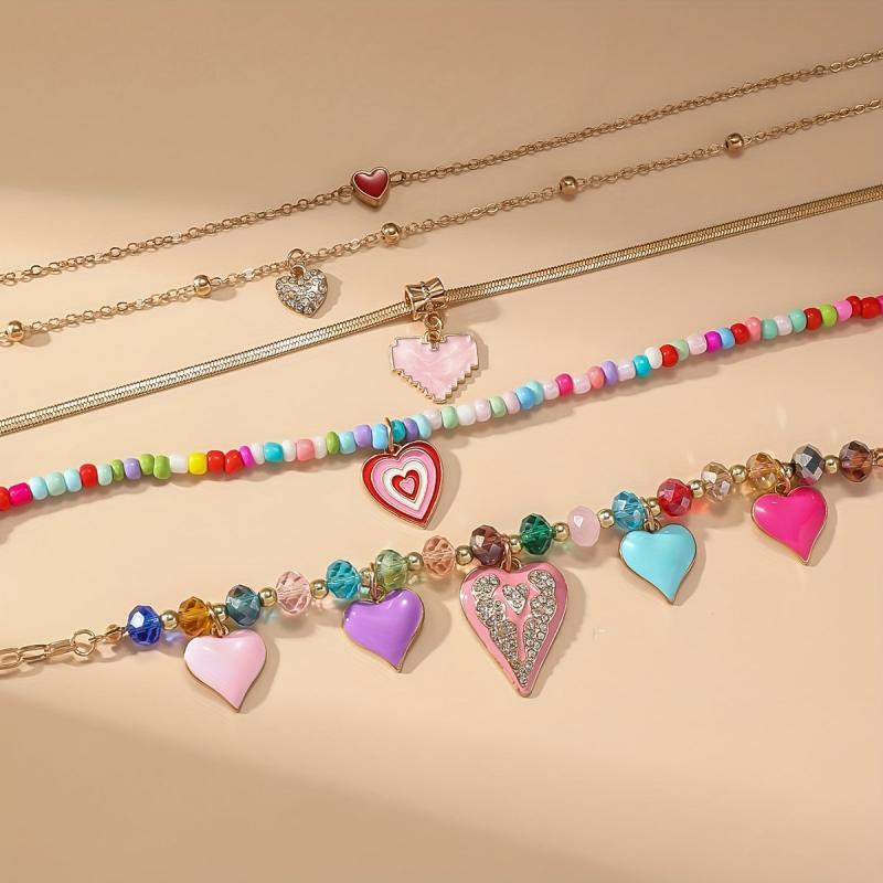 Add a stylish touch to your outfit with this Bohemian Beaded Heart Necklace Set. Featuring colorful irregular hearts for a fun pop of color and a touch of dopamine, this layered collarbone jewelry is perfect for women who love unique accessories.