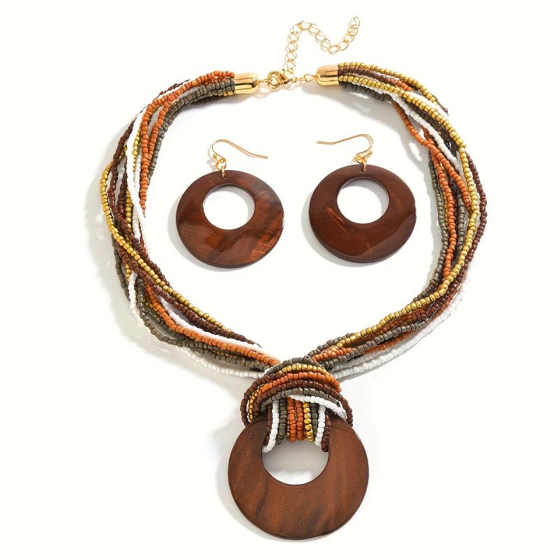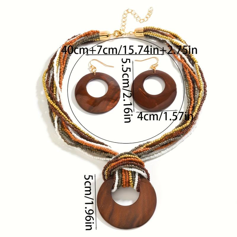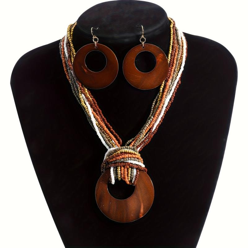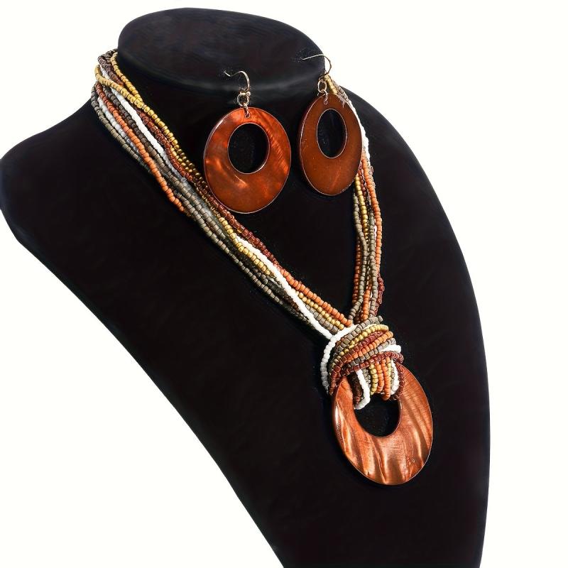 Embrace the ethnic charm with this stunning 3pcs Bohemian Layer Beaded Shell Earrings and Necklace Set. The colorful beads and shells exude a vibrant vibe, making it a perfect gift for friends and family.