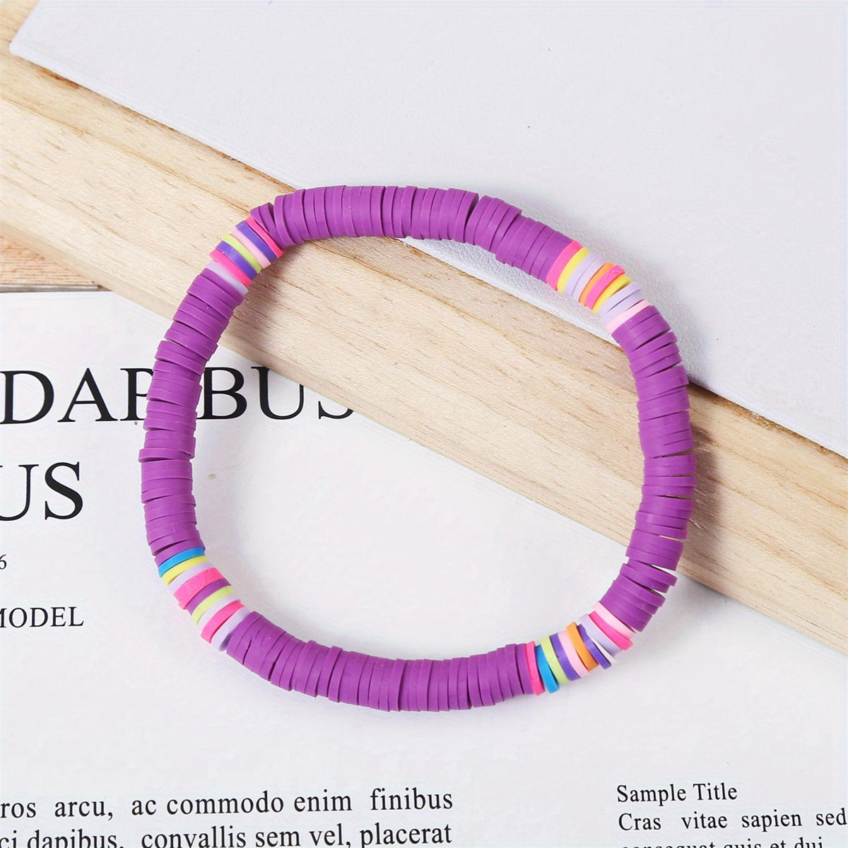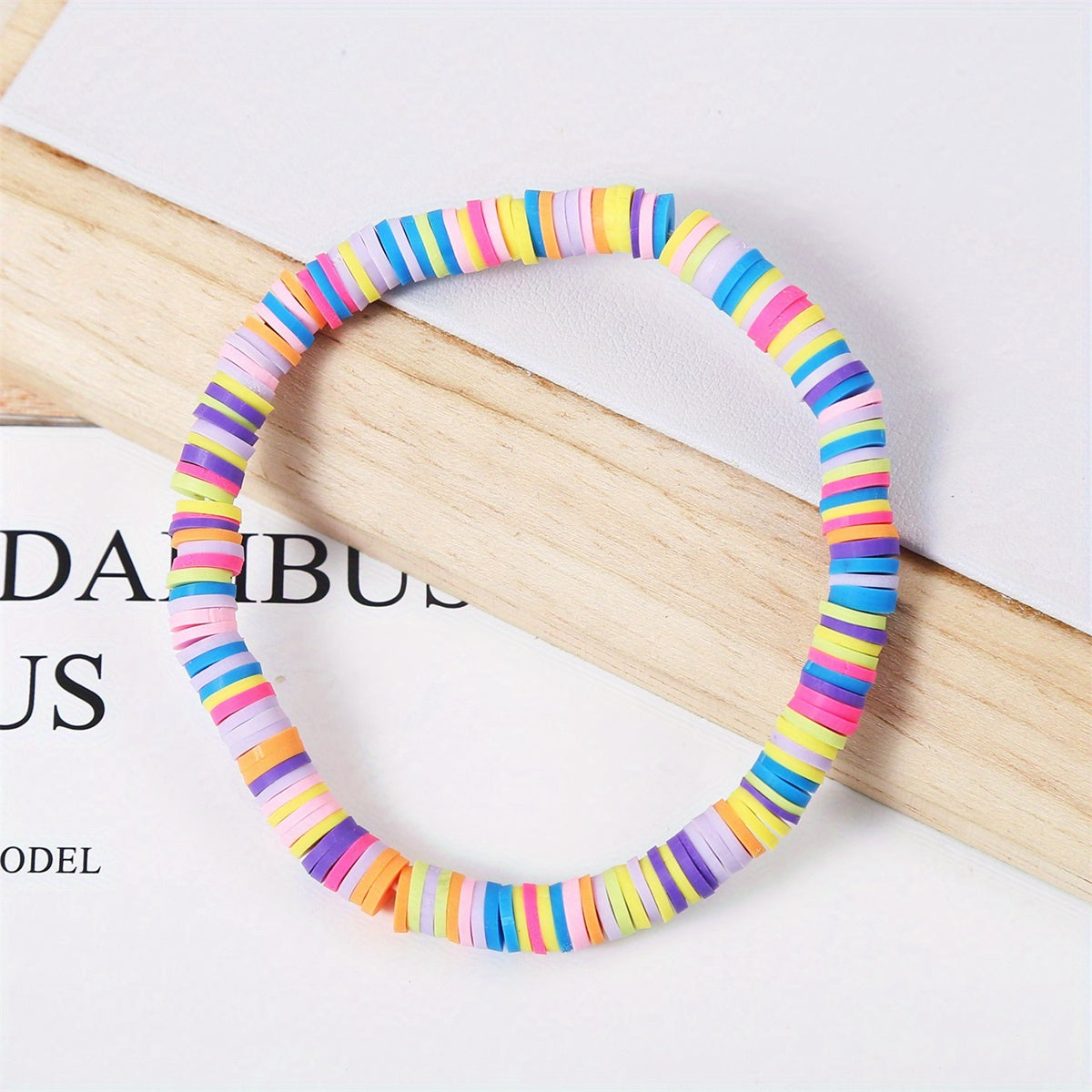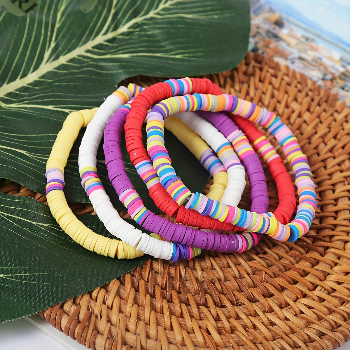 Add a touch of bohemian flair to your summer beach look with this colorful soft clay bracelet. Perfect for travel or everyday wear.