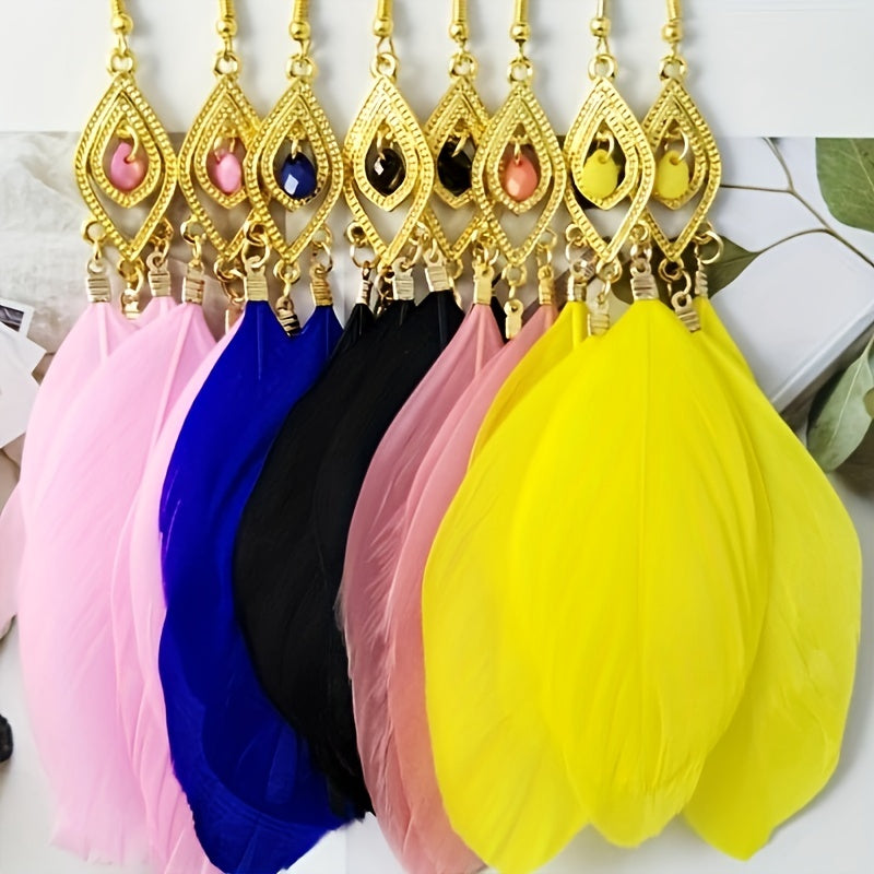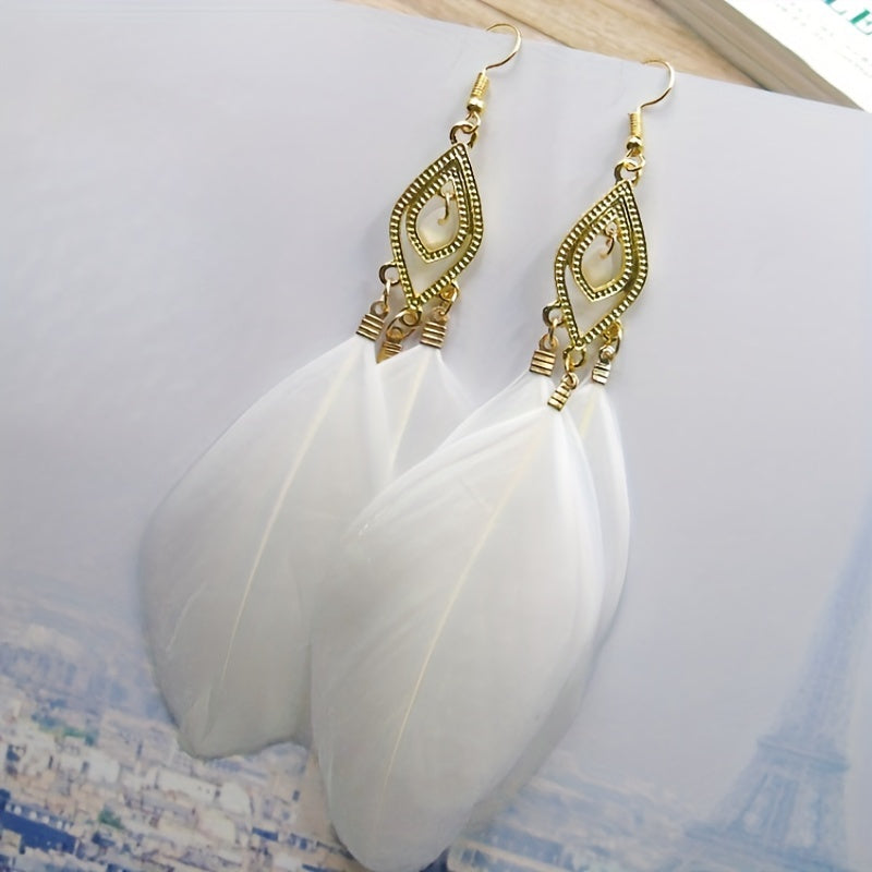 These Bohemian feather earrings feature a retro style with long tassels, making them an ideal gift for parties, weddings, or everyday wear. Add a touch of elegance to your outfit with these unique accessories.