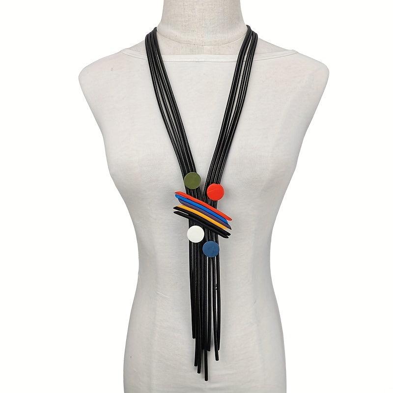 This Bohemian layered necklace features colorful wood beads and tassel strands, perfect for everyday or party wear. Add a touch of ethnic flair to your outfit!