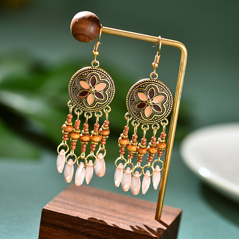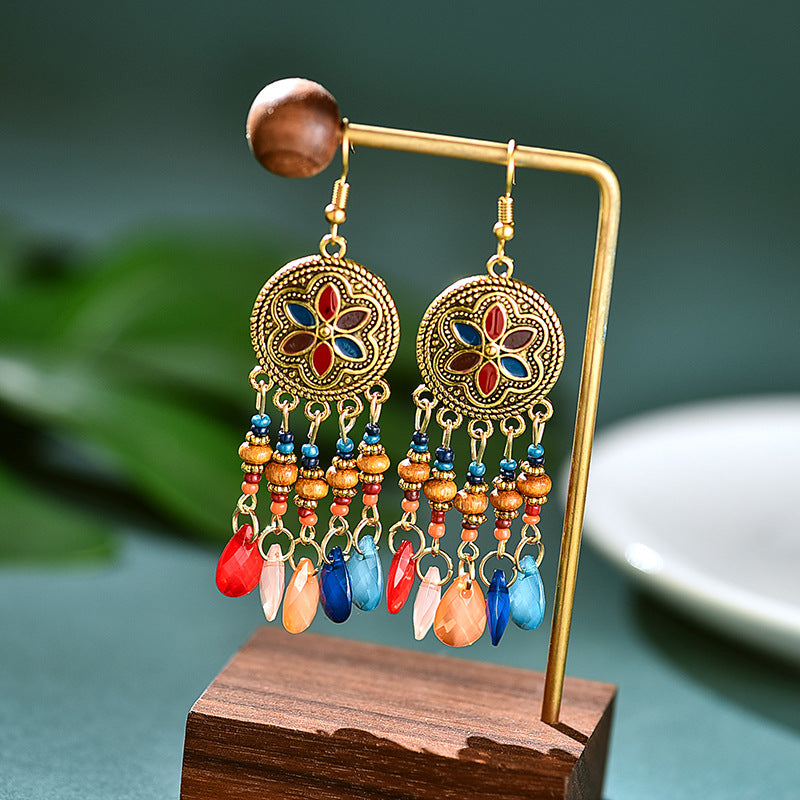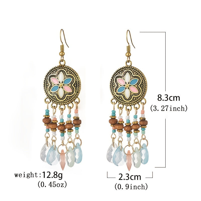 Add a retro bohemian touch to your look with these ethnic vintage seed bead dangle earrings. Perfect for women, ladies, and girls on vacation or holiday.