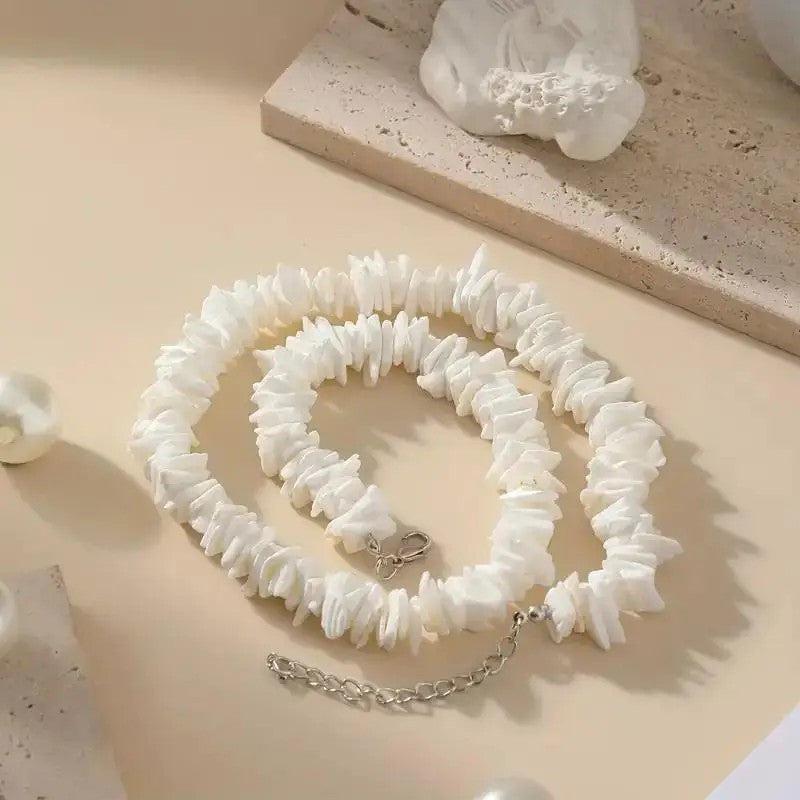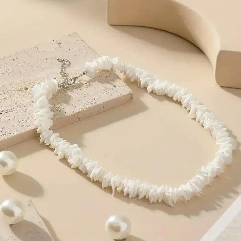 Elevate your beachy style with this handcrafted shell necklace. Perfect for summer and seashell jewelry enthusiasts.