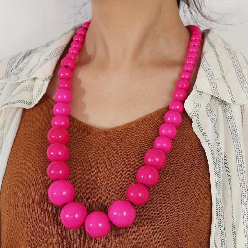 Add a pop of color with this vibrant pink recycled wood bead necklace. Lightweight and suitable for everyday wear, this unique accessory is perfect for casual and formal occasions. Makes a great gift for any woman in your life.