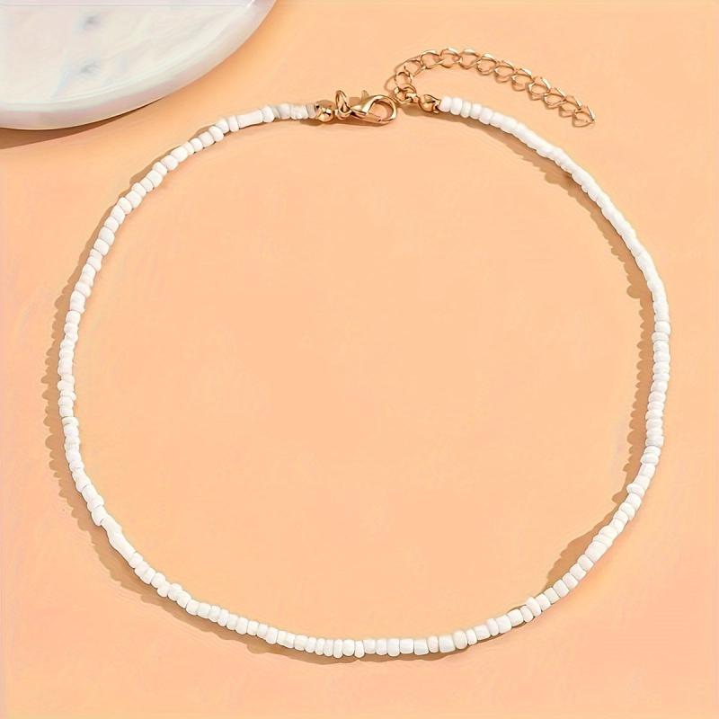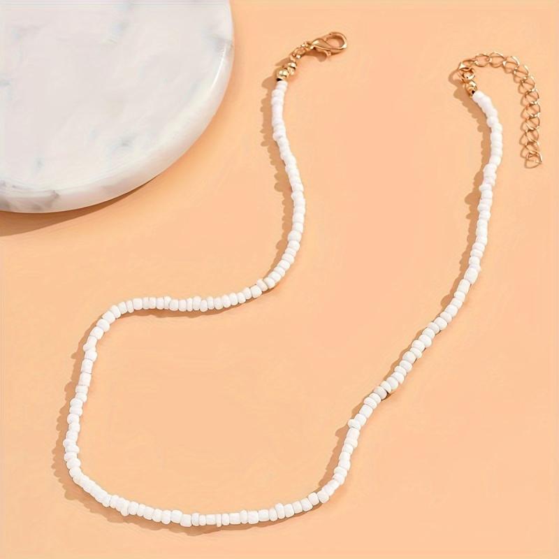 This bohemian style necklace features rice beads and is perfect for daily wear or gift giving. It is a versatile piece of jewelry that adds a touch of boho chic to any outfit.