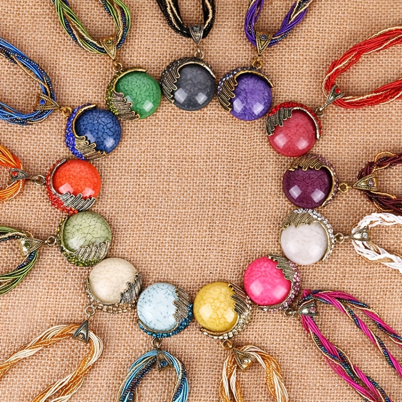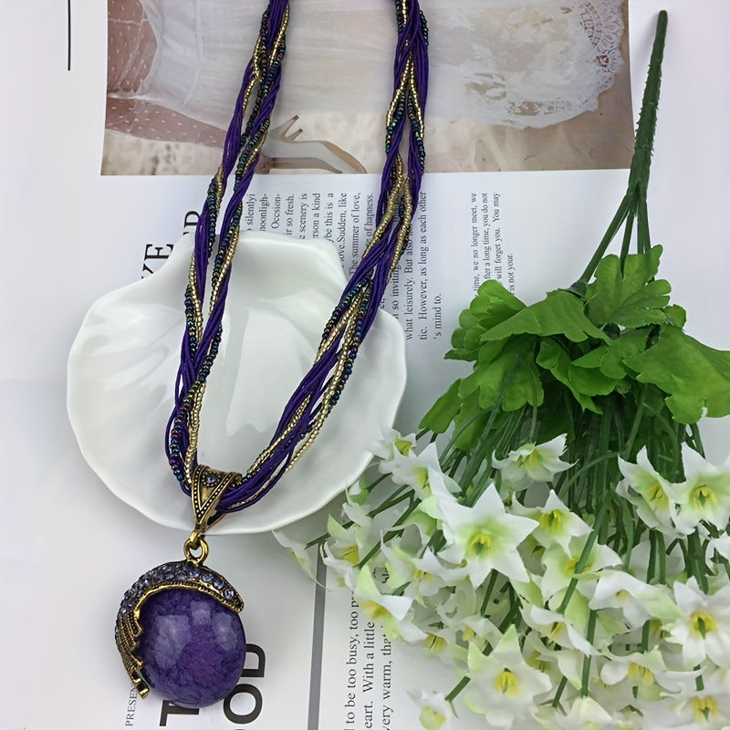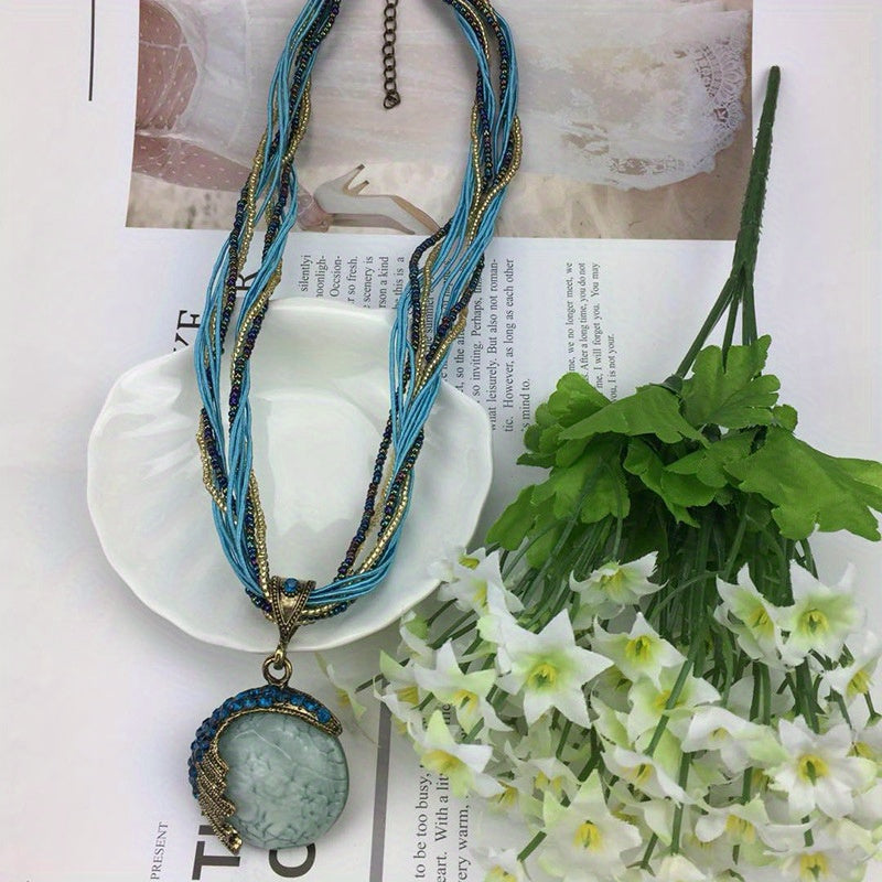 Retro ethnic style necklace with braided tiny beads rope design, perfect as a sweater chain accessory.