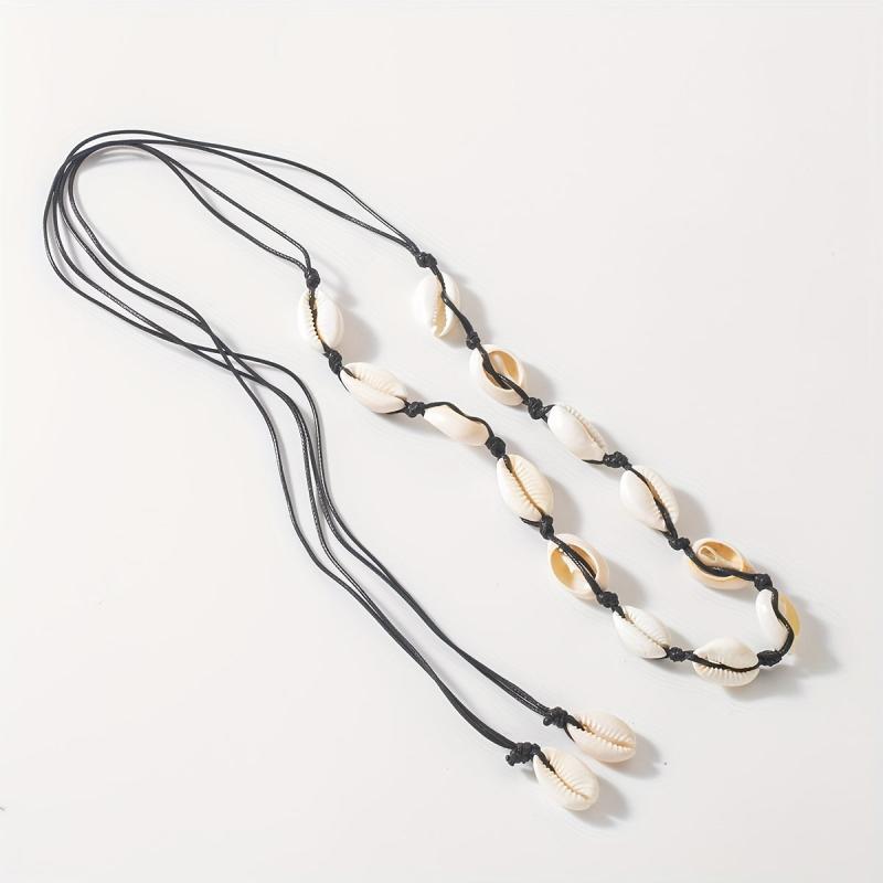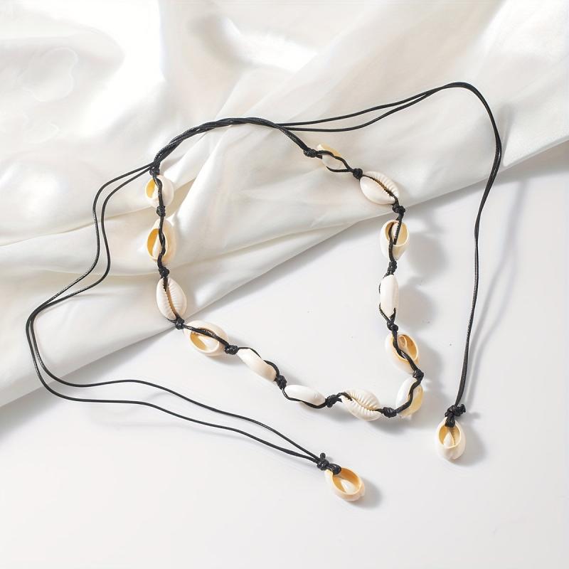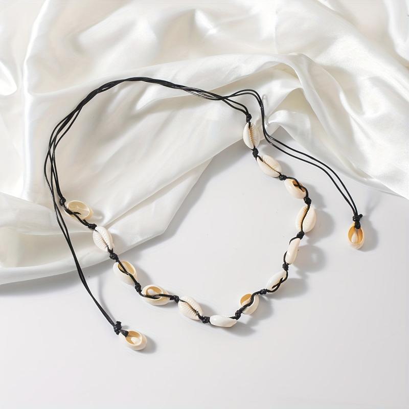 This adjustable necklace is perfect for adding a touch of bohemian style to your casual or vacation outfits. It features natural shells intricately woven into the design, making it an ideal summer accessory.