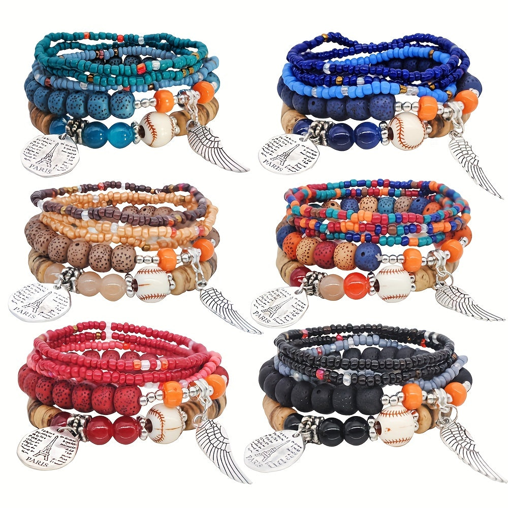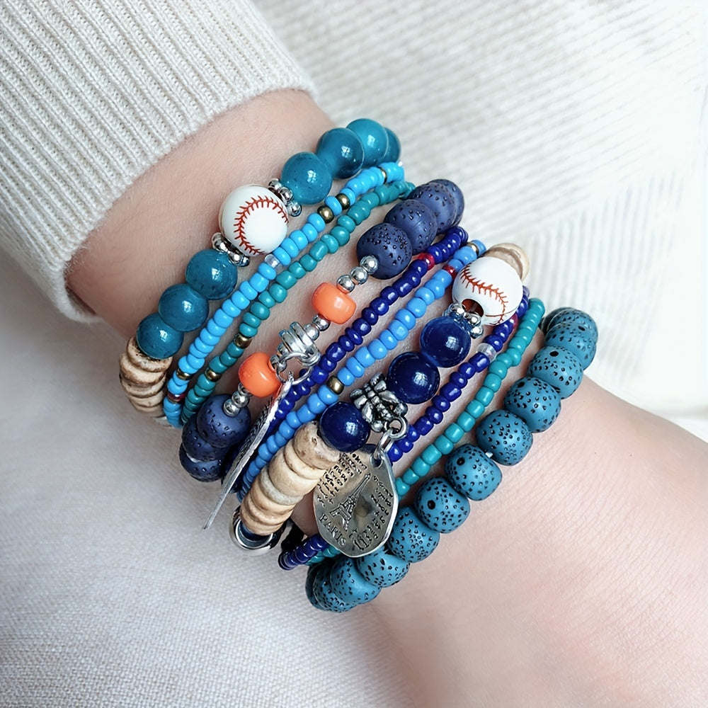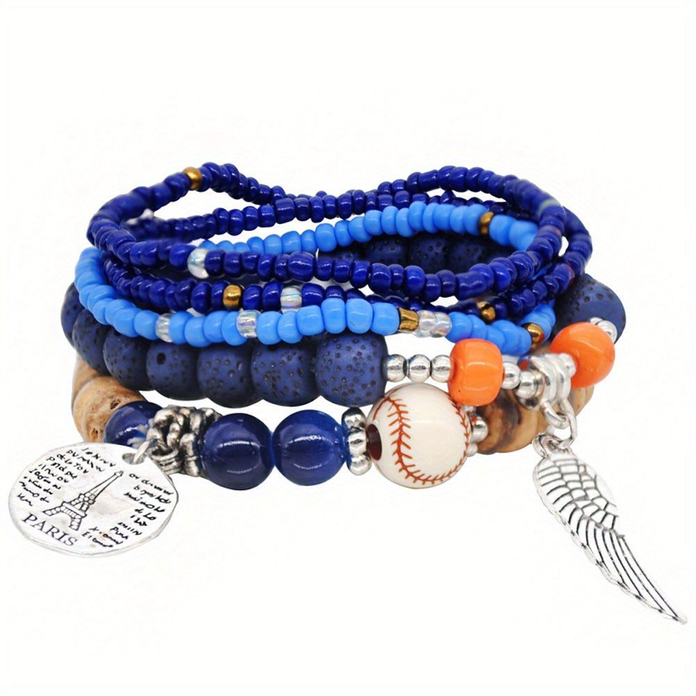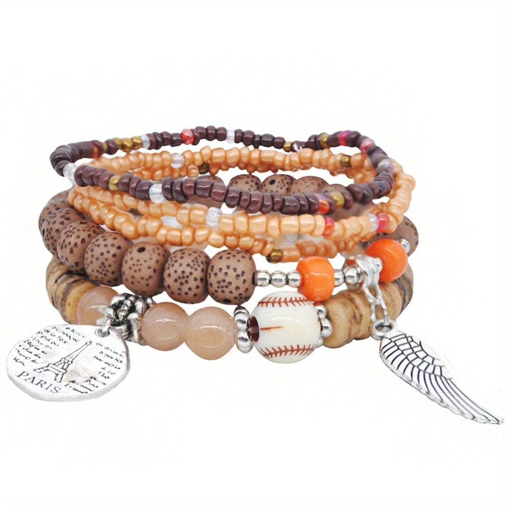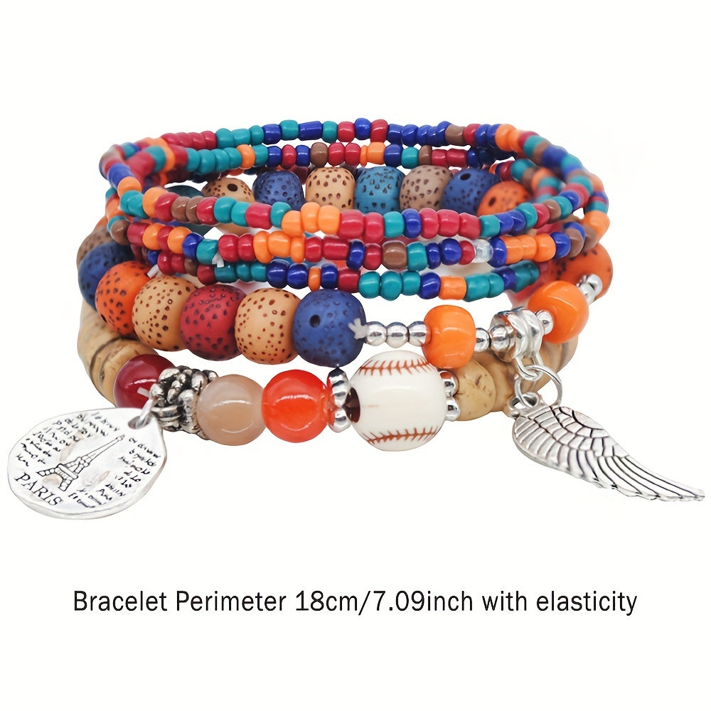 Enhance your style with this set of 5 bohemian stackable bracelets. Featuring multilayered design and sparkling crystals, these bracelets are perfect for various occasions.