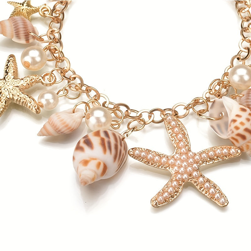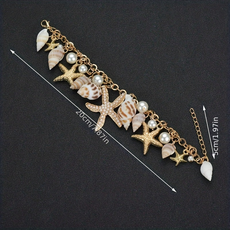 Add a touch of ocean vibes to your style with this bohemian starfish and shell bracelet, perfect for a summer beach vacation.