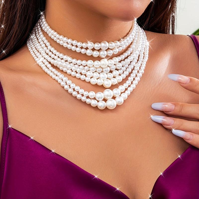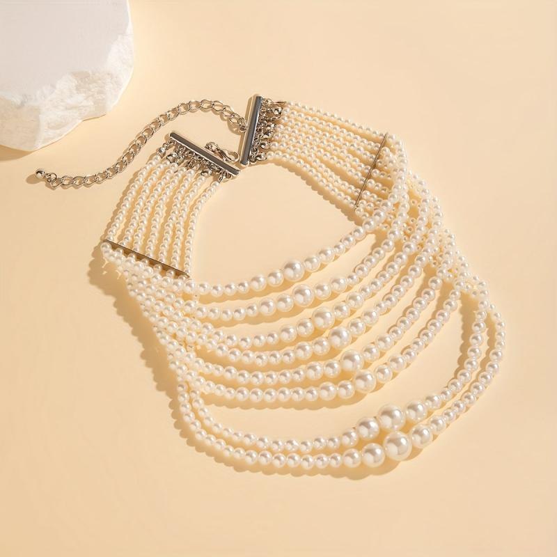 Elevate your look with this Bohemian Style layered faux pearl adhesive necklace. Perfect for banquets and festivals, pair it with sweaters for a chic and versatile style statement.