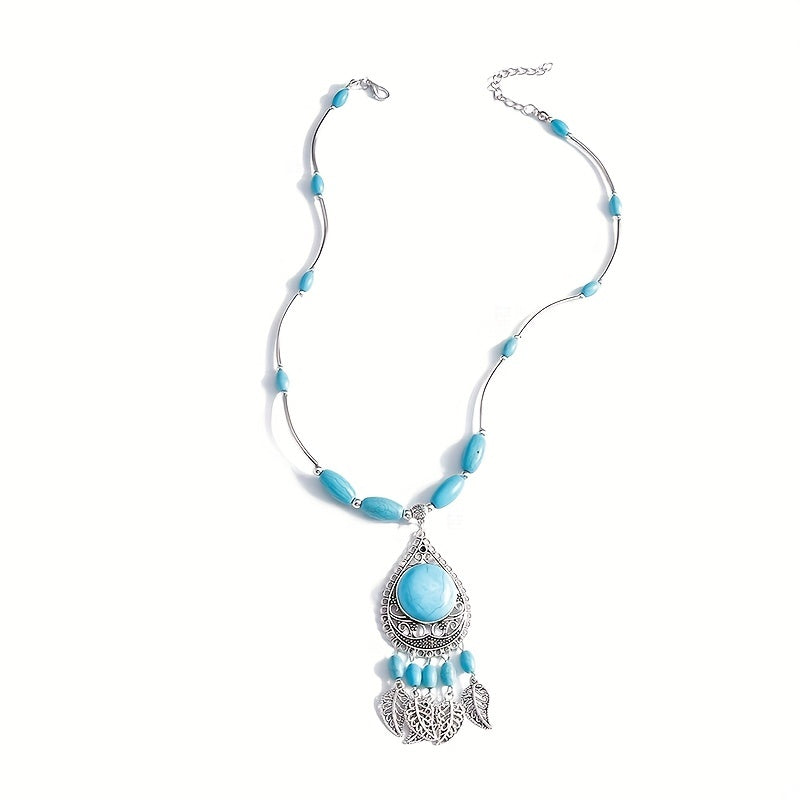 This retro 925 silver necklace features natural turquoise inlays, making it a perfect accessory for any party or special occasion. The leaf tassel design adds a bohemian touch to your outfit.