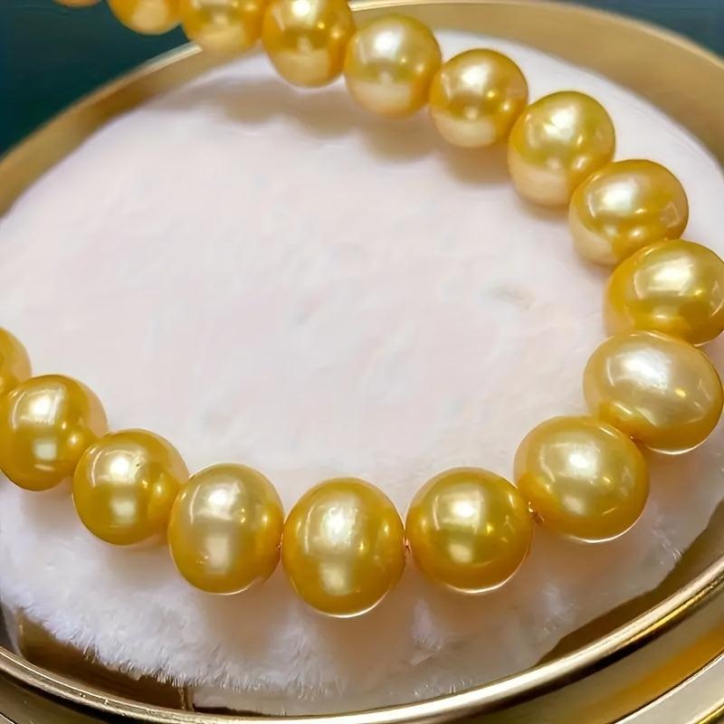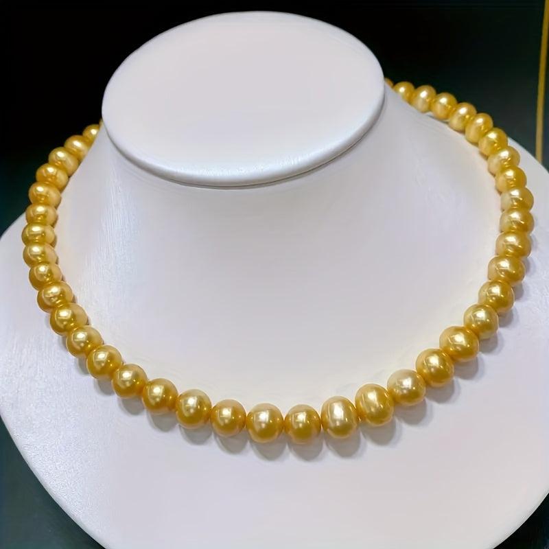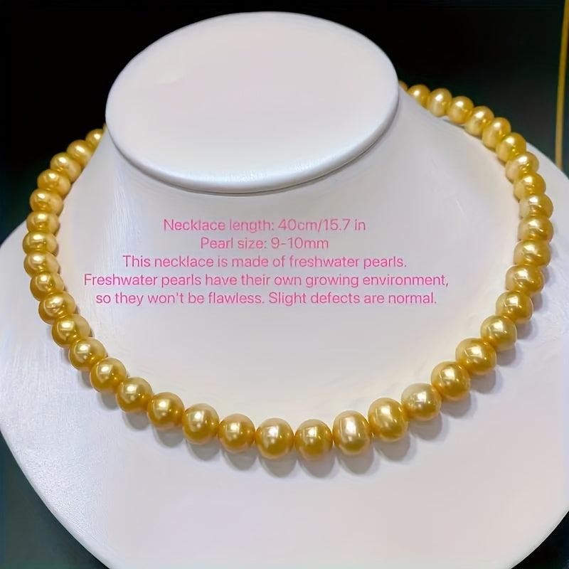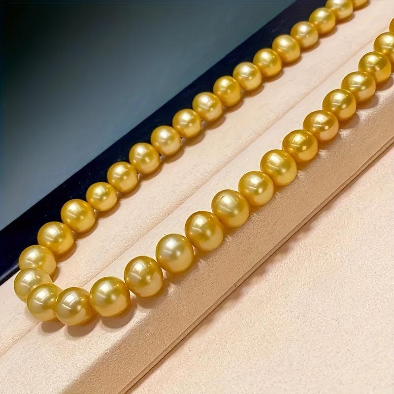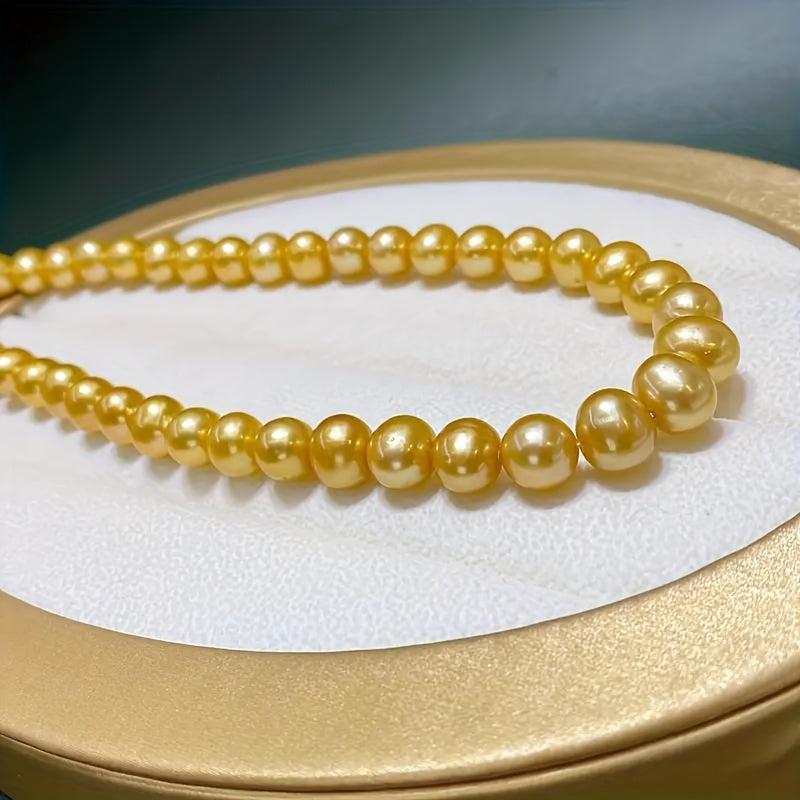 Add a touch of bohemian charm with this natural yellow freshwater pearls necklace. Featuring uniform round beads, this durable and versatile jewelry is perfect for casual attire or as a gift for women.