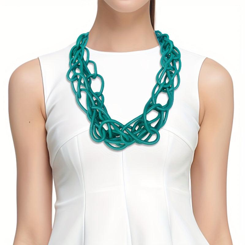 Elevate your casual attire with this unique teal rubber necklace. Perfect for parties, vacations, and as an Easter gift. Knot design adds a touch of style and durability to your jewelry collection.