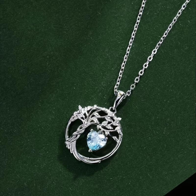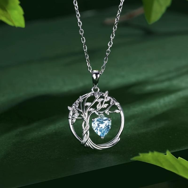 This vintage-style necklace features a Tree of Life pendant intricately designed in 925 sterling silver with a heart-shaped synthetic zirconia. Perfect for daily wear and allergy-friendly.