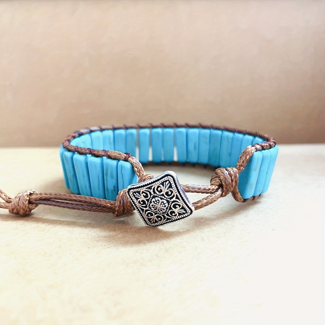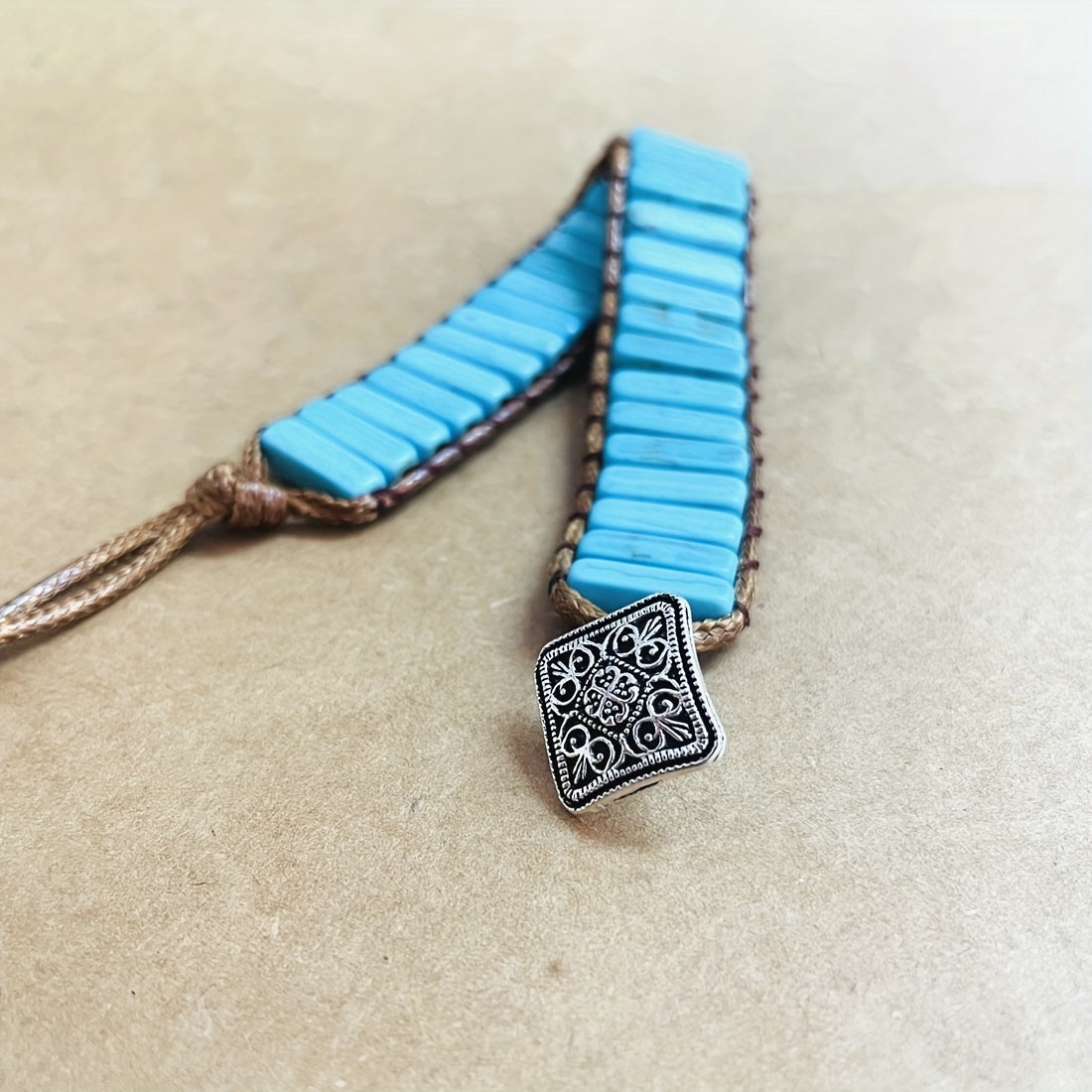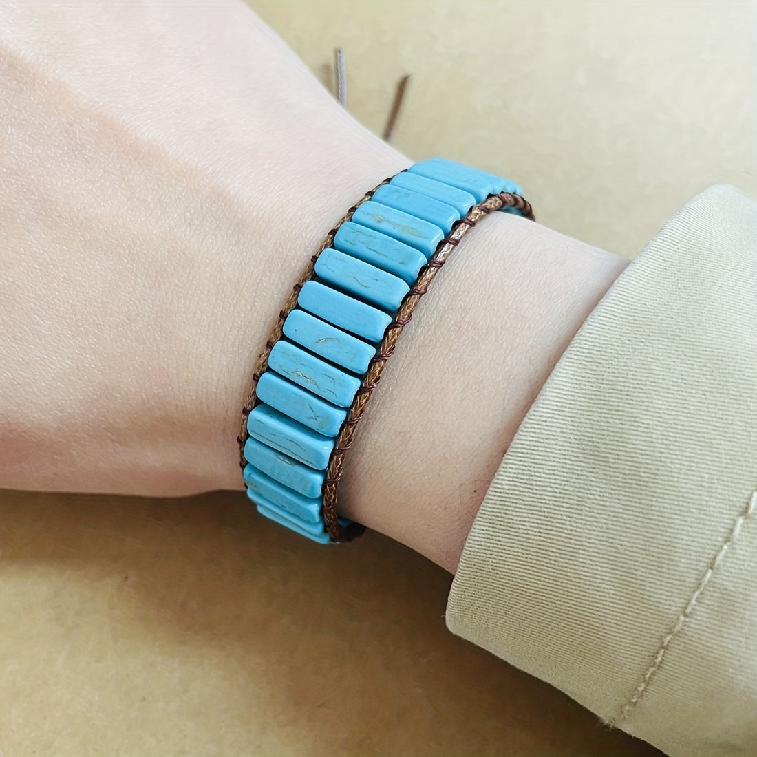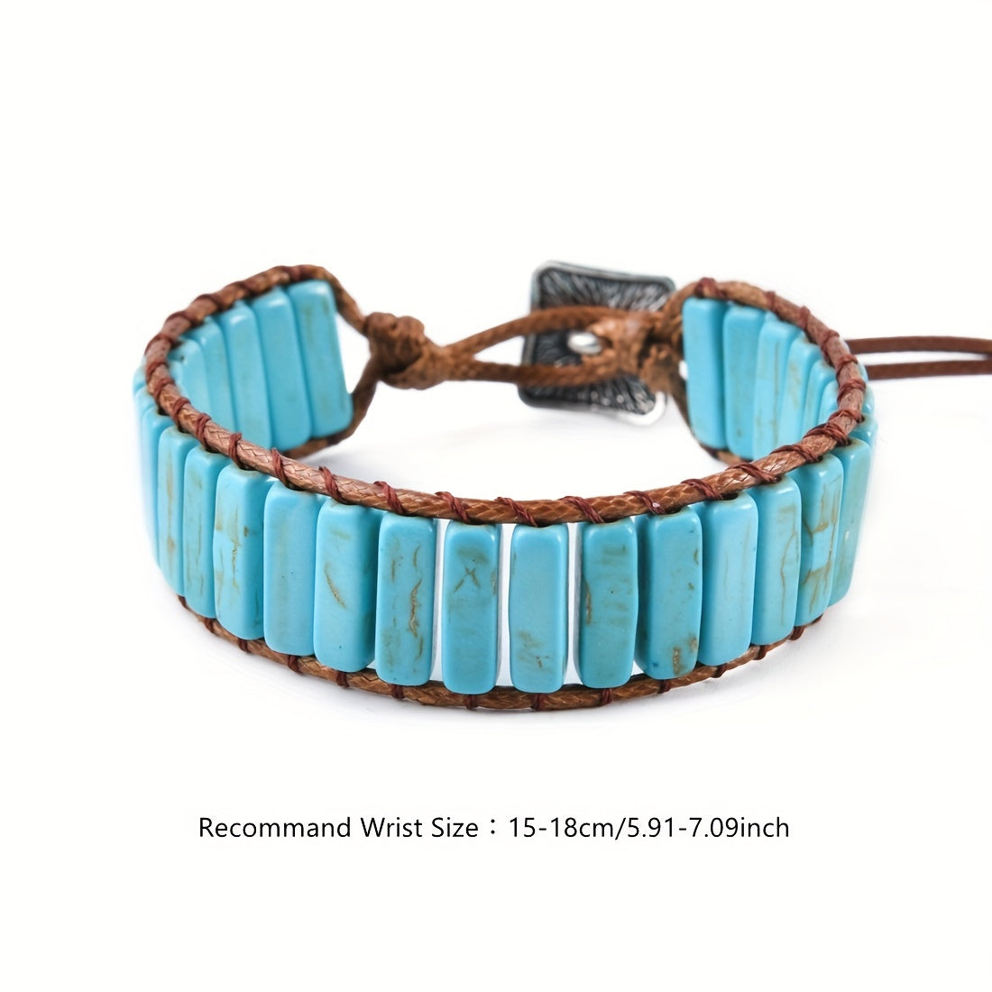 This Bohemian Turquoise Tube Beads Bracelet is a stylish and adjustable hand jewelry that makes a perfect gift for females. The bracelet features wax rope wrap design that adds a unique touch to any outfit.