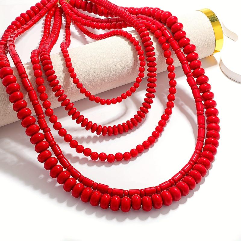 Elevate your style with this colorful resin beaded layered necklace set, perfect for daily outings or vacations. It makes a great gift for family and friends.