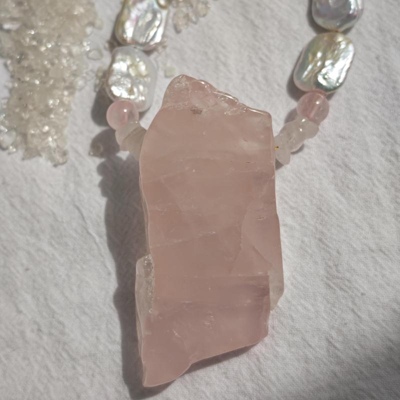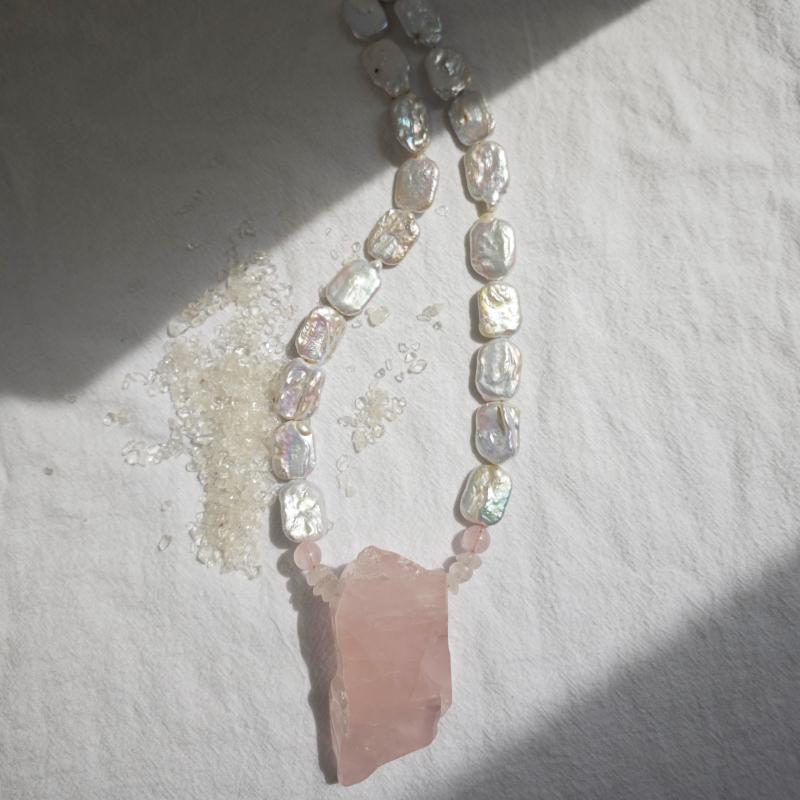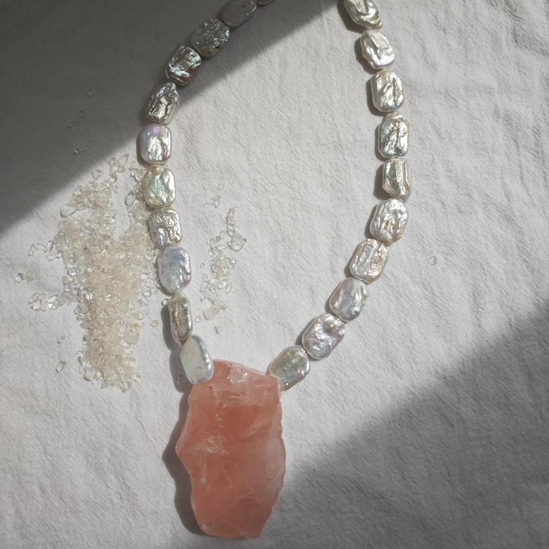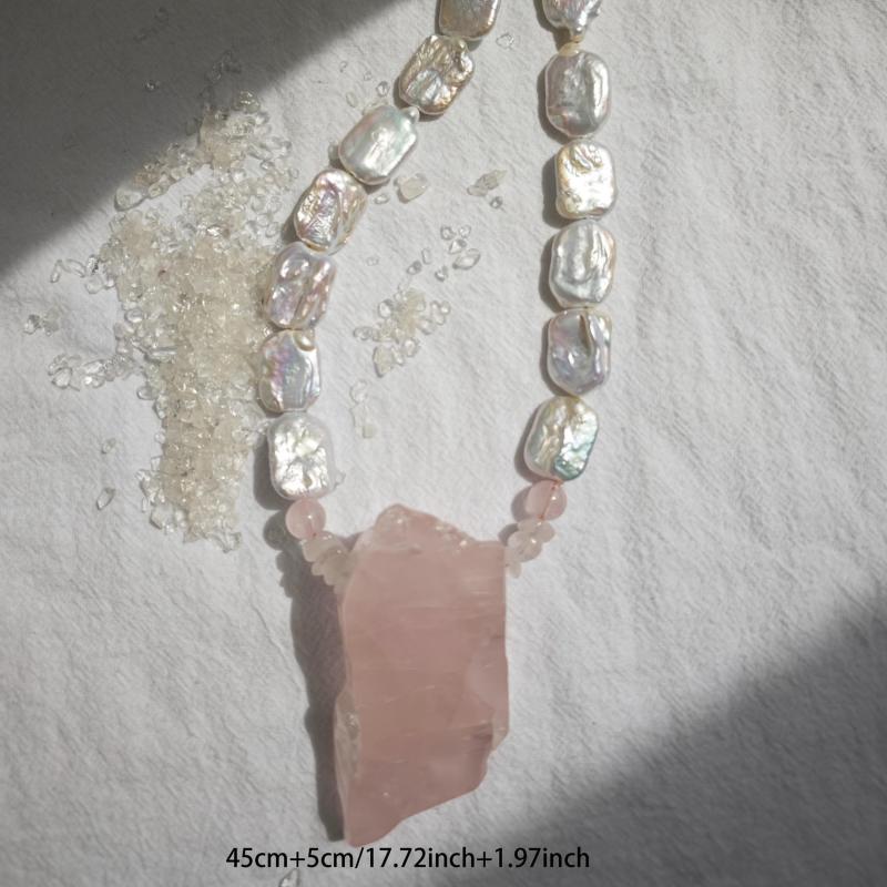 Handcrafted with soft pink freshwater pearls, this necklace exudes a bohemian vintage charm. The irregular teardrop pendant adds a unique touch to the design, while the lightweight and durable construction ensures lasting wear.