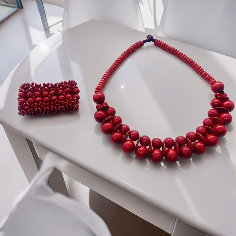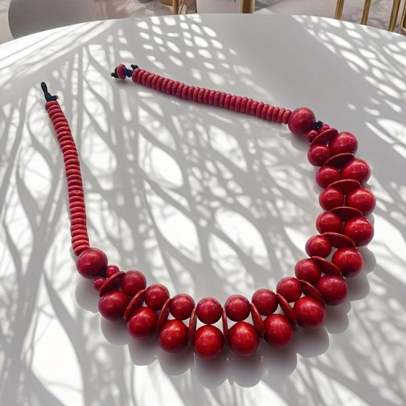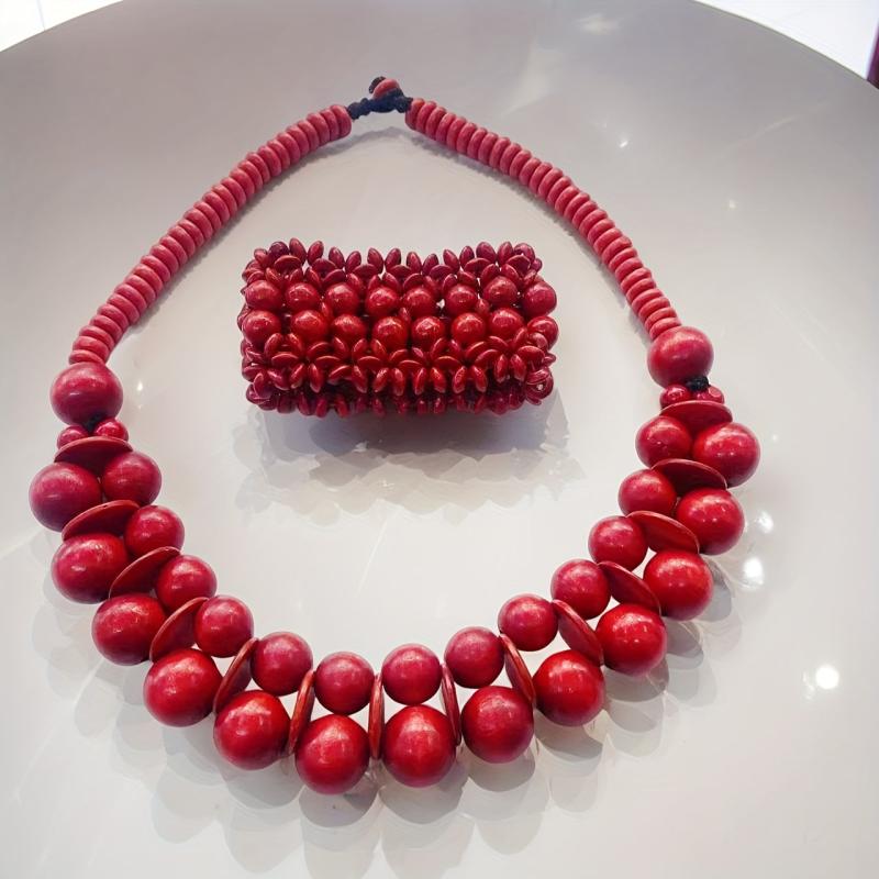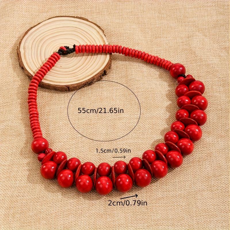 Elevate your style with this European and American wooden bead short necklace set featuring colorful beads. Perfect for a bohemian look or travel accessory.