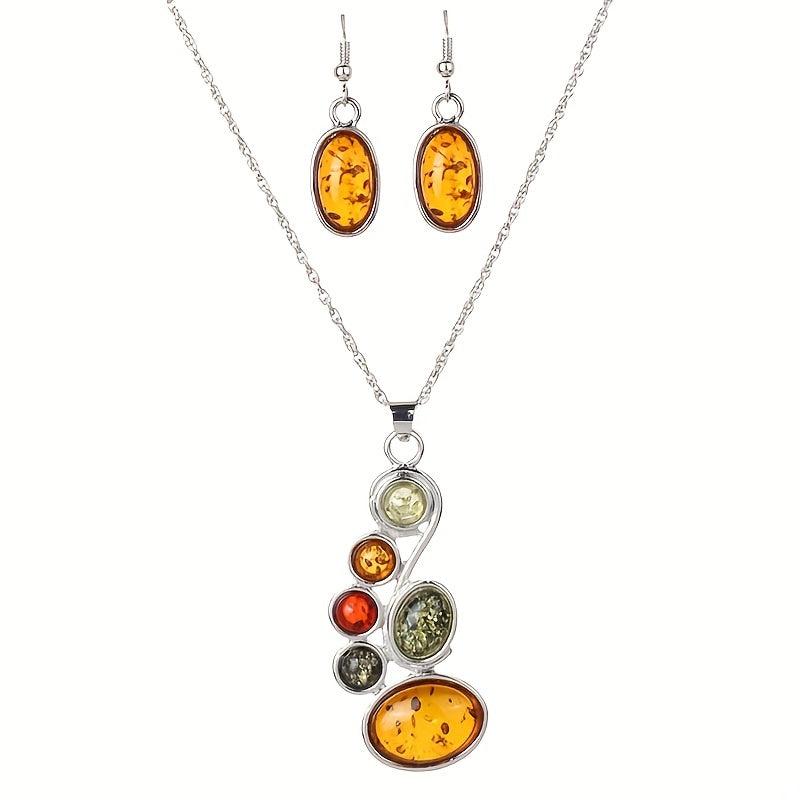 Vintage boho alloy jewelry set with retro amber pendant for daily wear. Exaggerated design in vibrant colors. Suitable for all seasons.