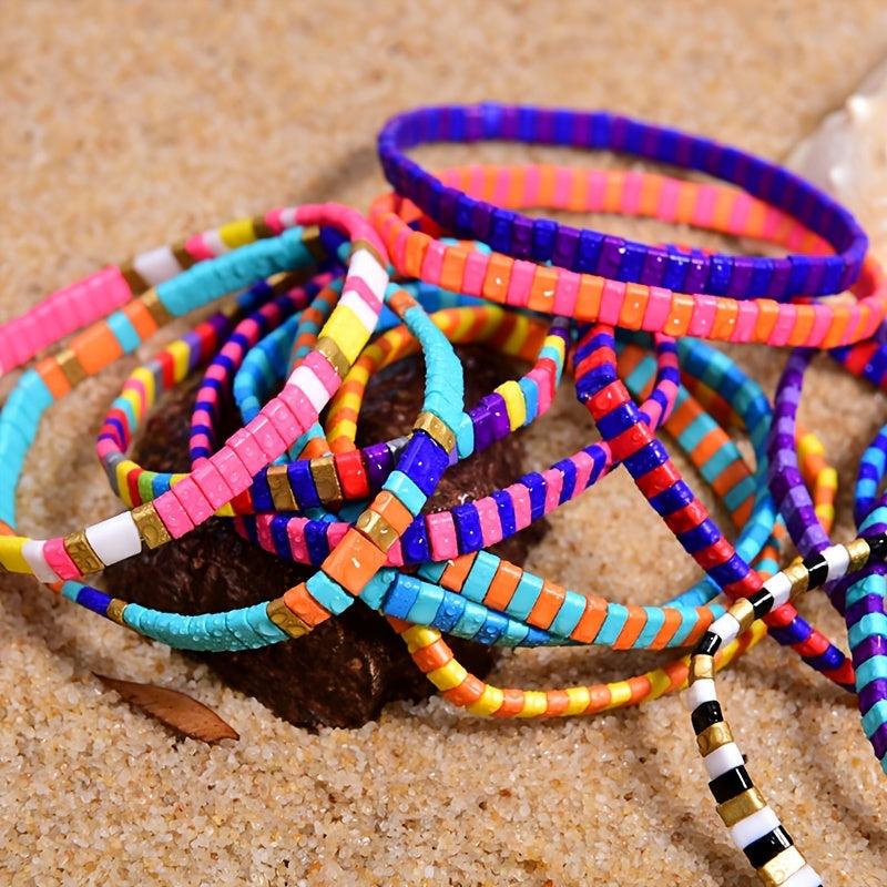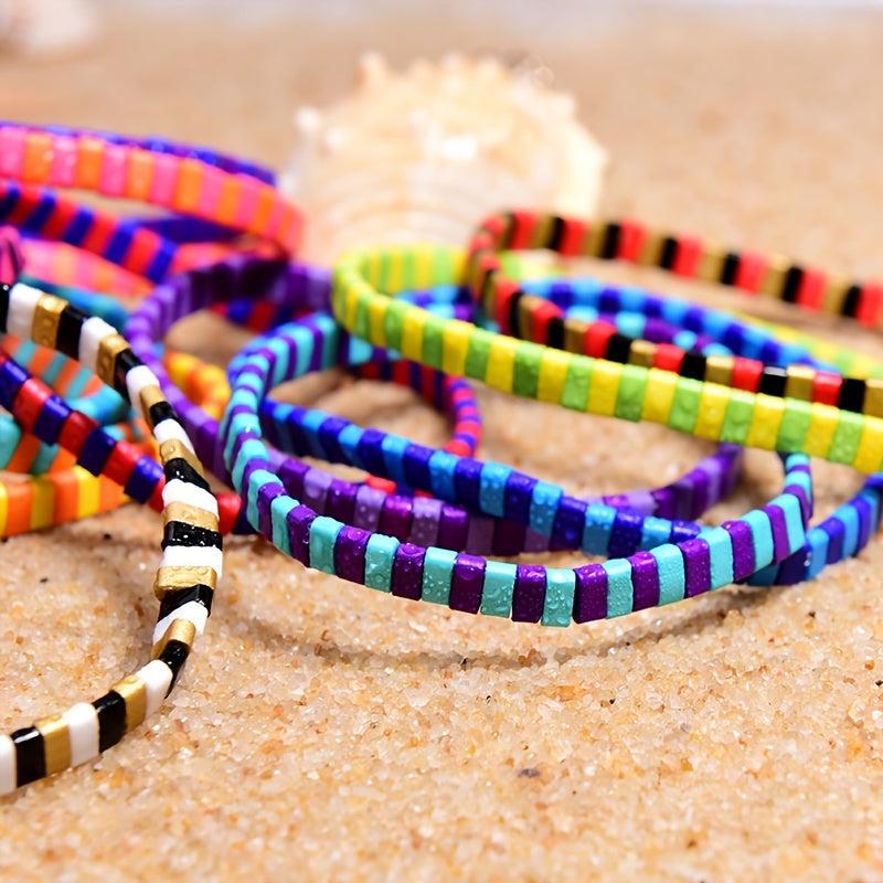 Elevate your style with these colorful beaded bracelets designed for a boho chic look. These unique hand jewelry pieces are perfect for adding a pop of color to your outfit.