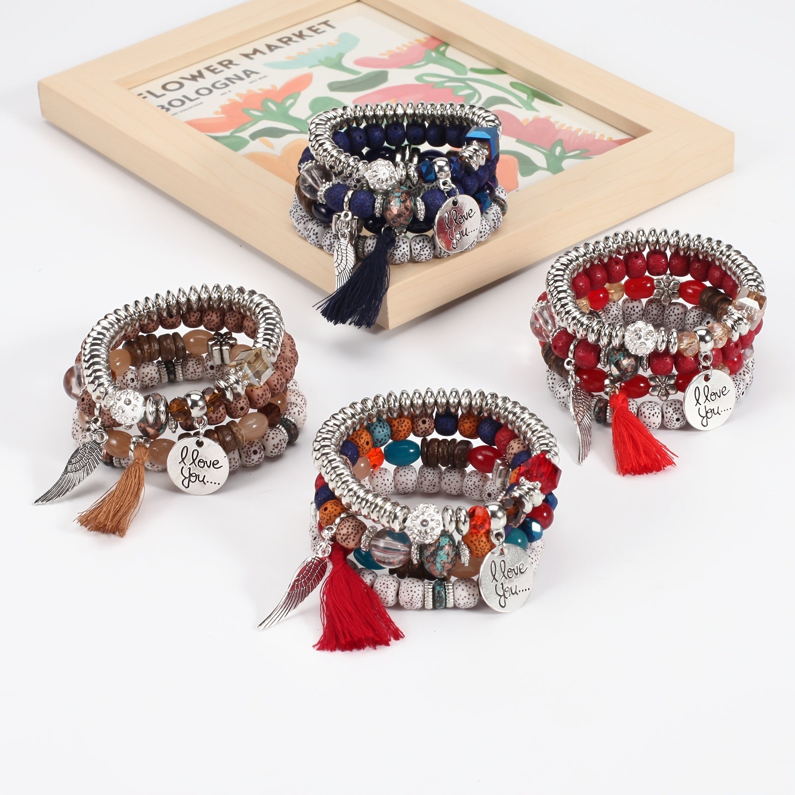 Elevate your style with this bohemian beaded charm bracelet. This multilayer, colorful stackable bracelet is a fine jewelry gift that adds a touch of whimsy and color to any outfit.