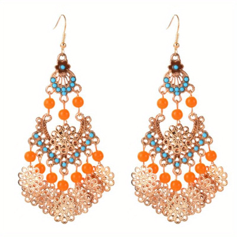 These vintage boho earrings are perfect for adding a touch of style to your outfit. Ideal for parties and holidays, they feature beads and tassel drops.