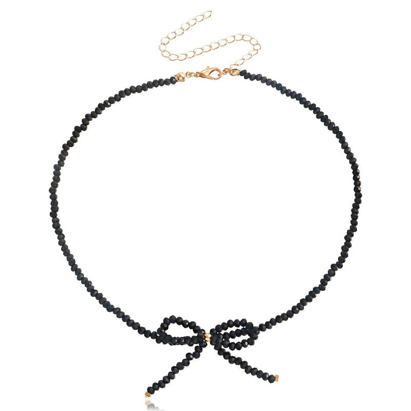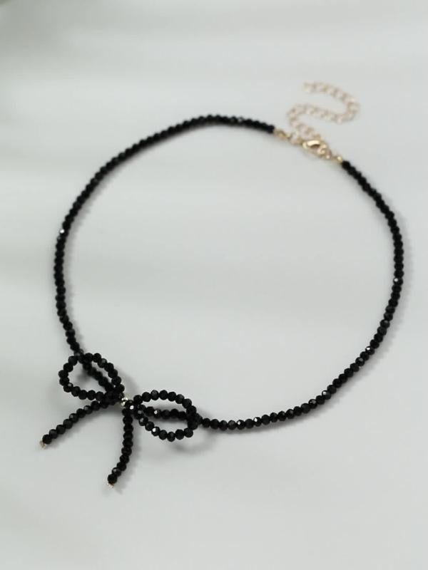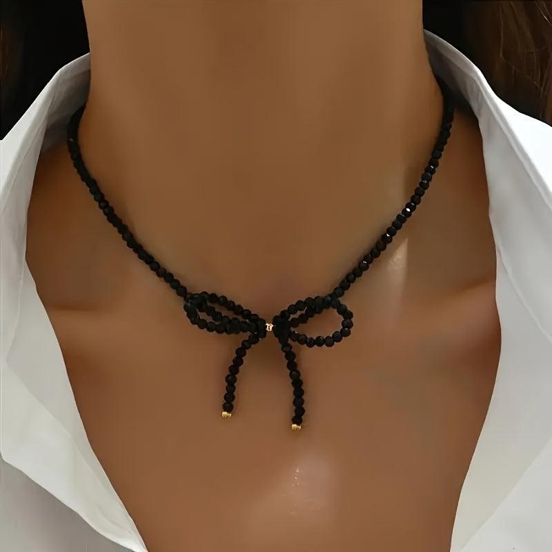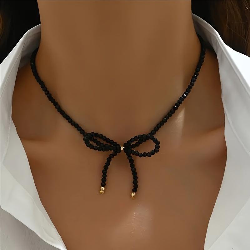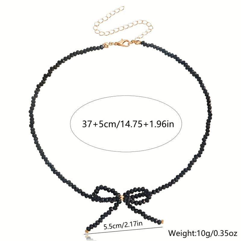 Add a touch of bohemian style to your outfit with this chic choker necklace featuring faceted glass beads and a delicate bow detail. Perfect for daily wear or as a thoughtful gift for any occasion. Suitable for all seasons.