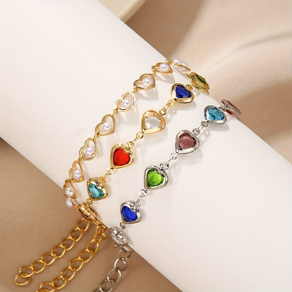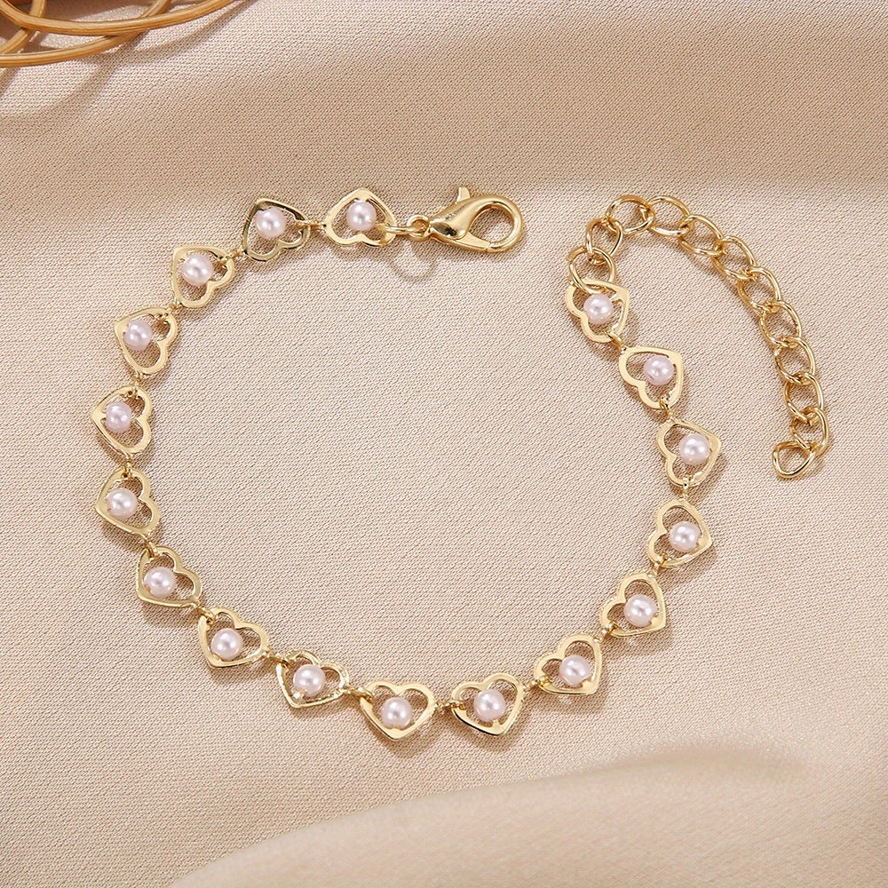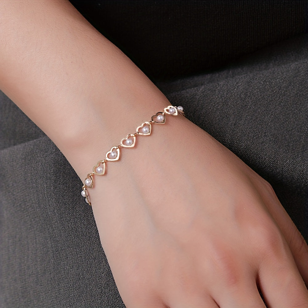 Add a touch of whimsy and color to your summer style with this bohemian faux pearl love heart bracelet.