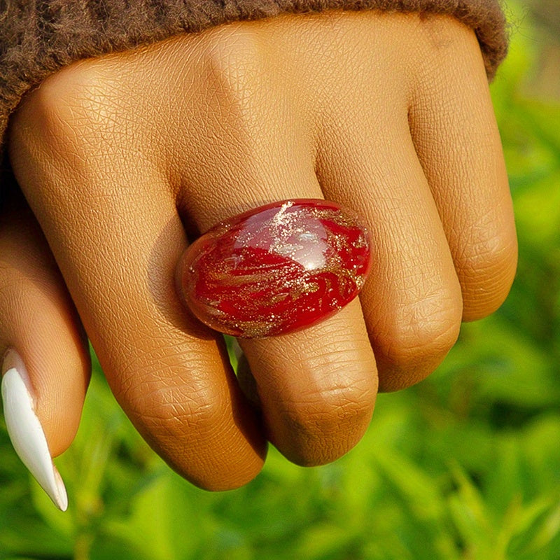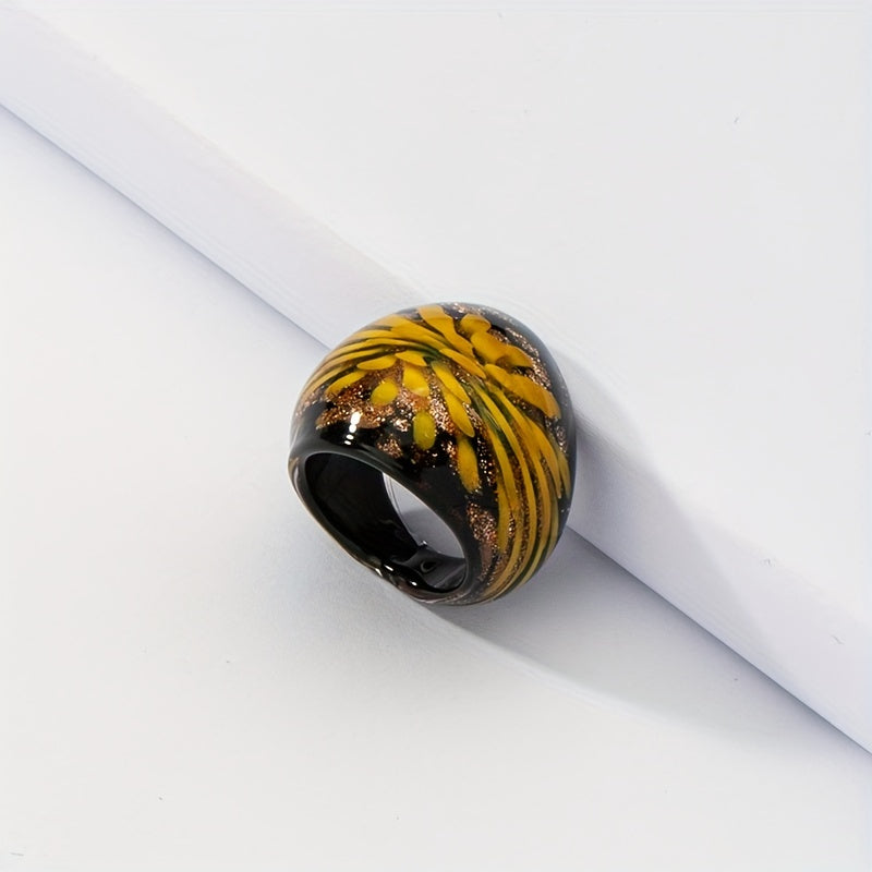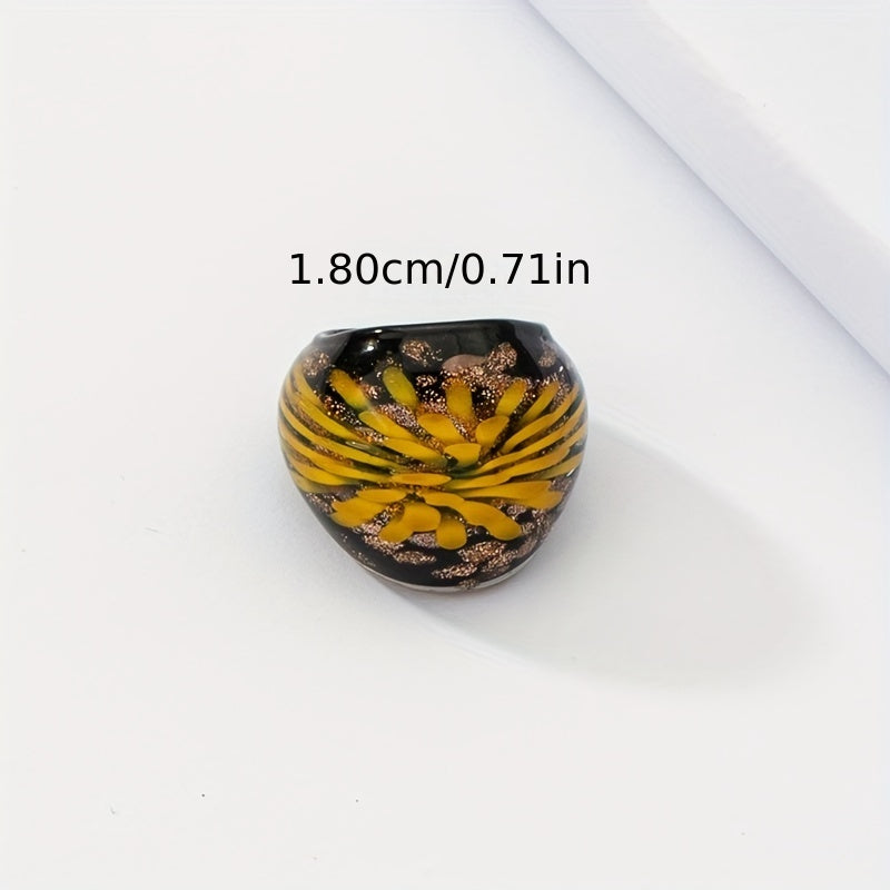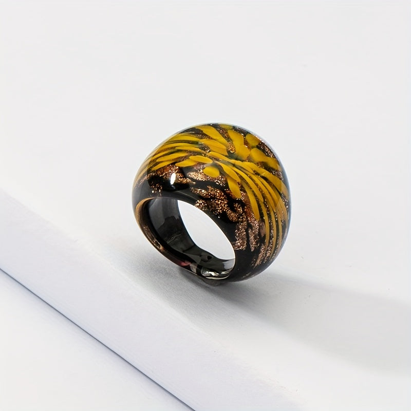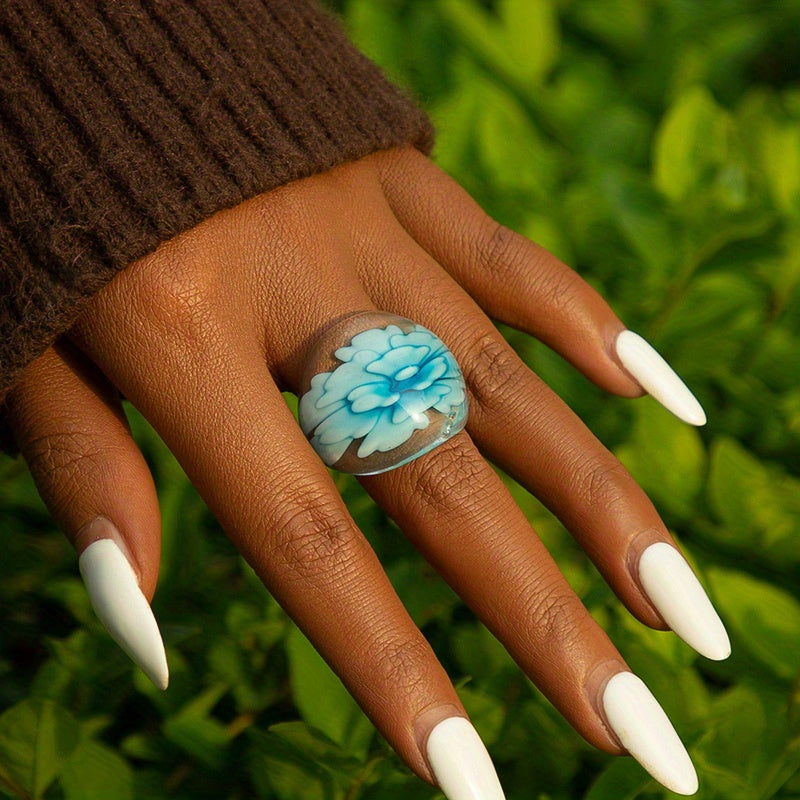 Add a touch of boho style to your daily outfits with this wide ring featuring a flower pattern and sparkling powder. The perfect accessory for your summer vacation look.