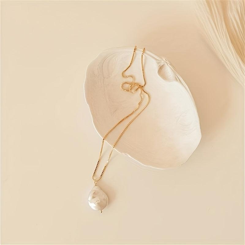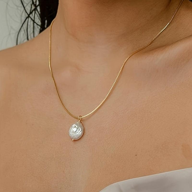 Elevate your style with this bohemian necklace featuring irregular freshwater pearls on a golden tone stainless steel chain. Perfect for parties and festivals.