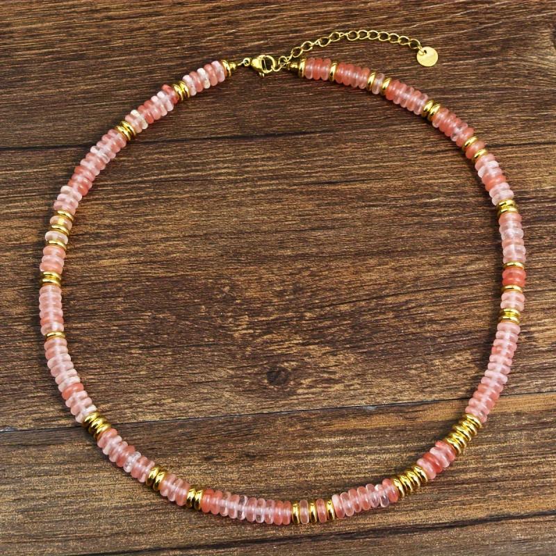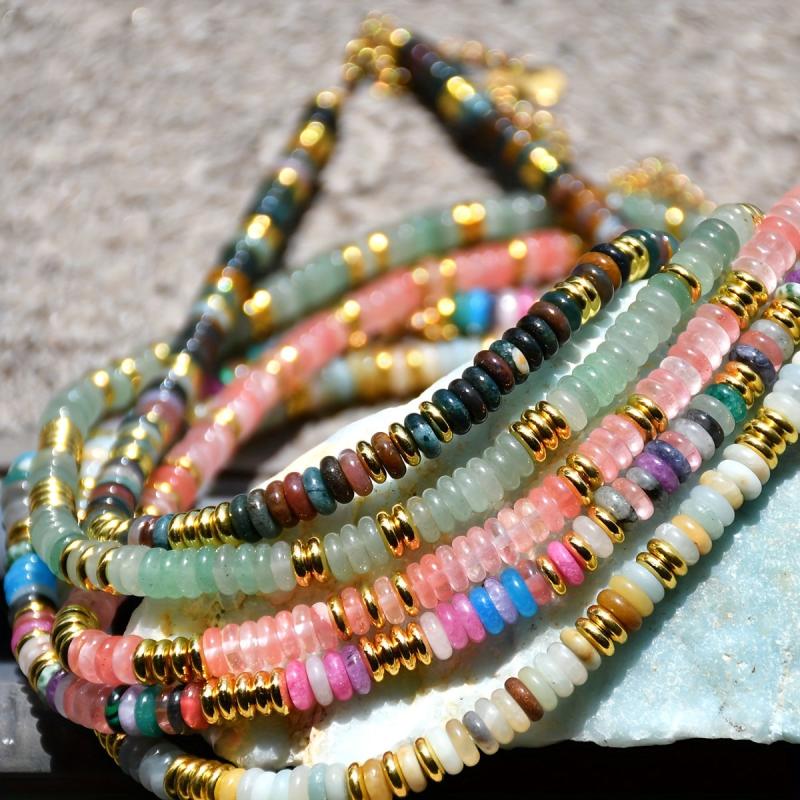 Elevate your style with this boho natural gemstone beaded necklace featuring intricate beadwork and golden spacer beads. Perfect for women for vacation and daily wear.