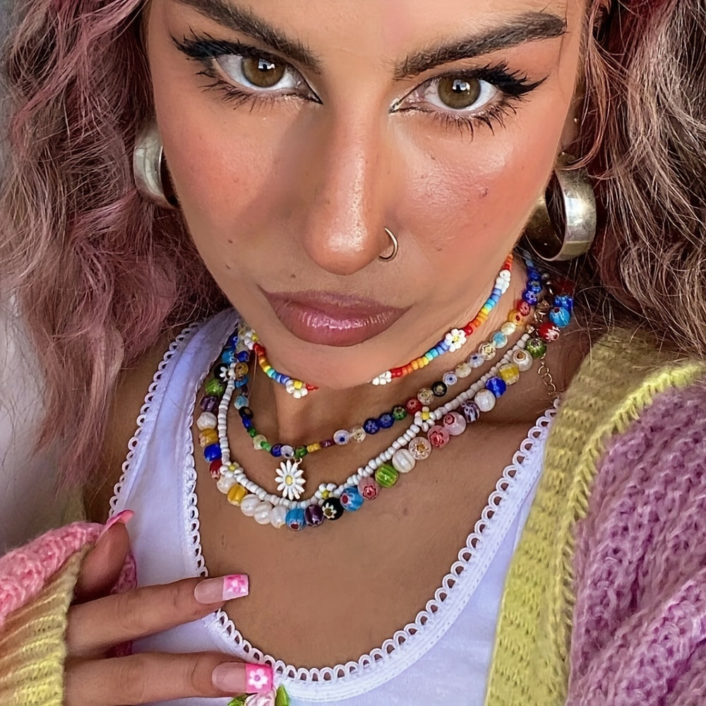 Add a pop of color to your summer outfits with this Y2K style colorful beads necklace. Perfect for holiday and beachwear.