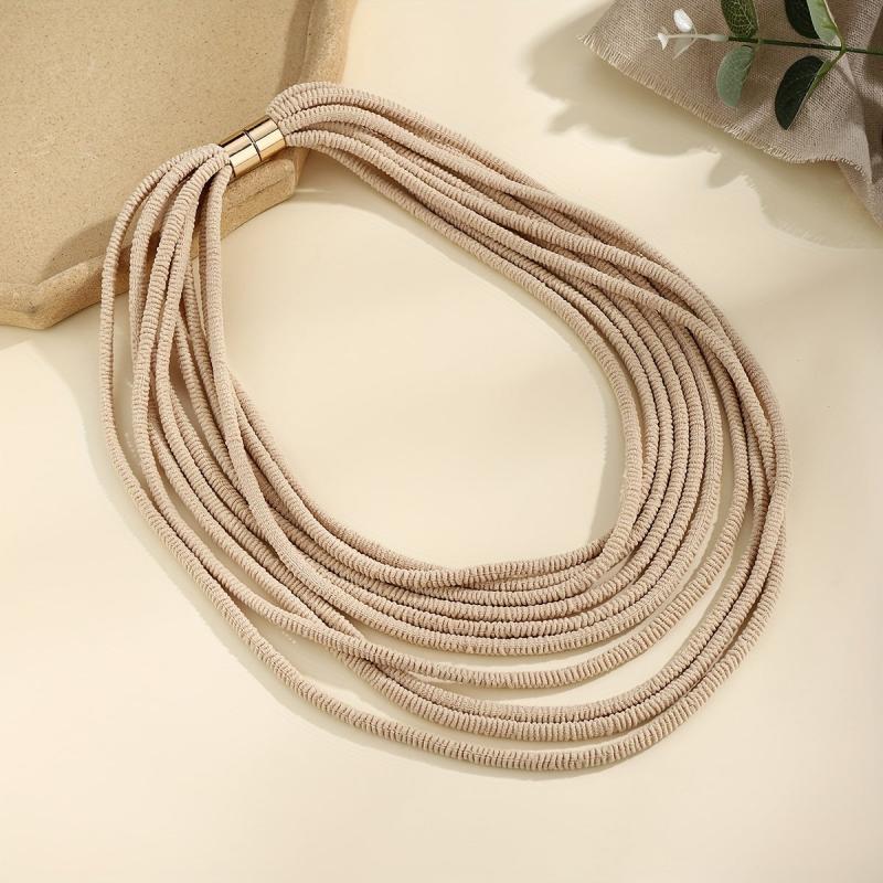 Hand woven bohemian necklace with synthetic June birthstone, perfect for parties and lightweight to wear.