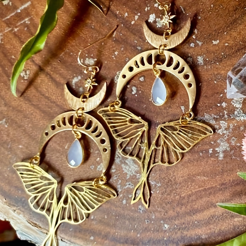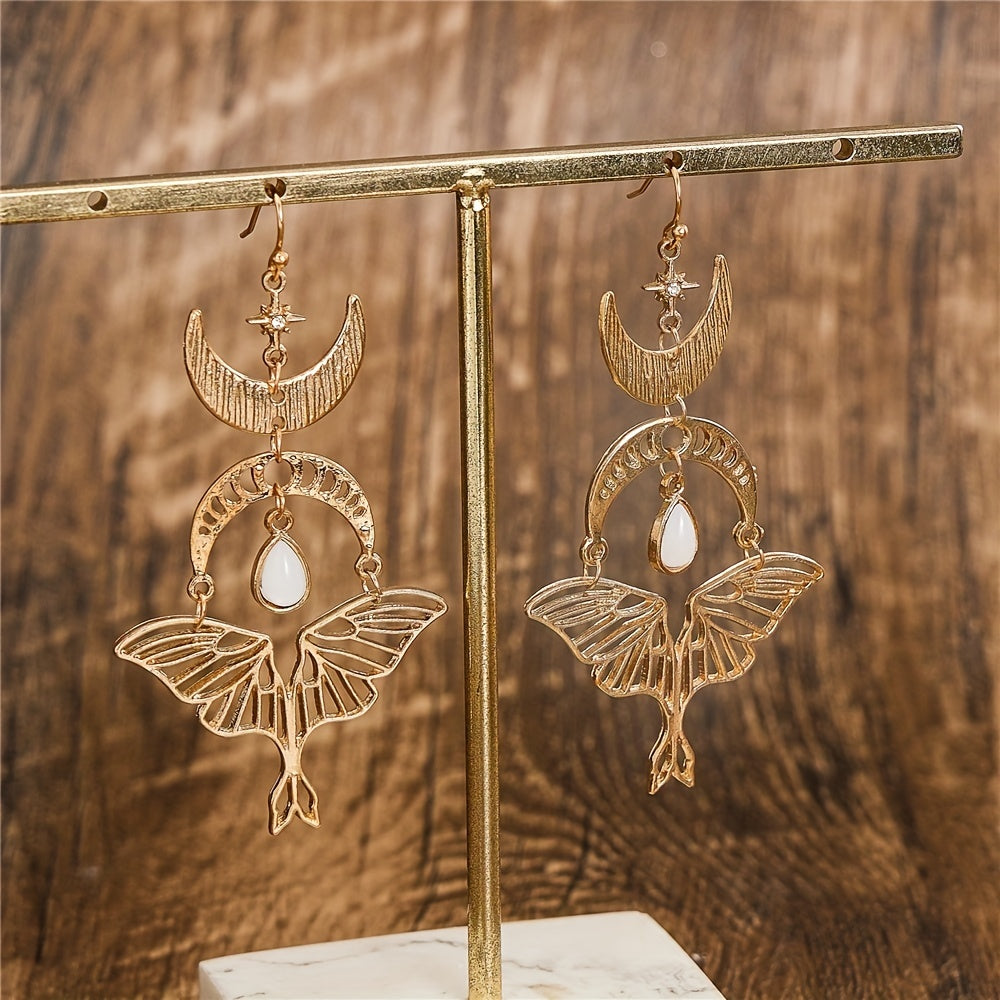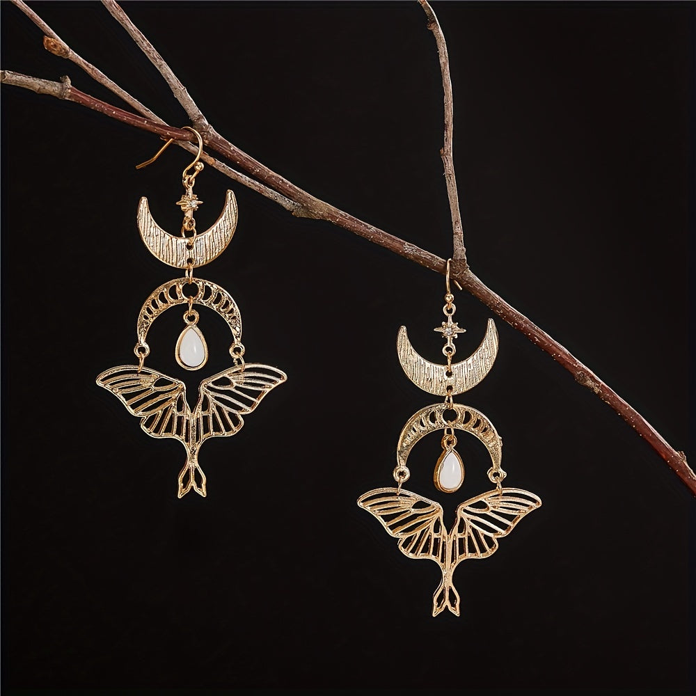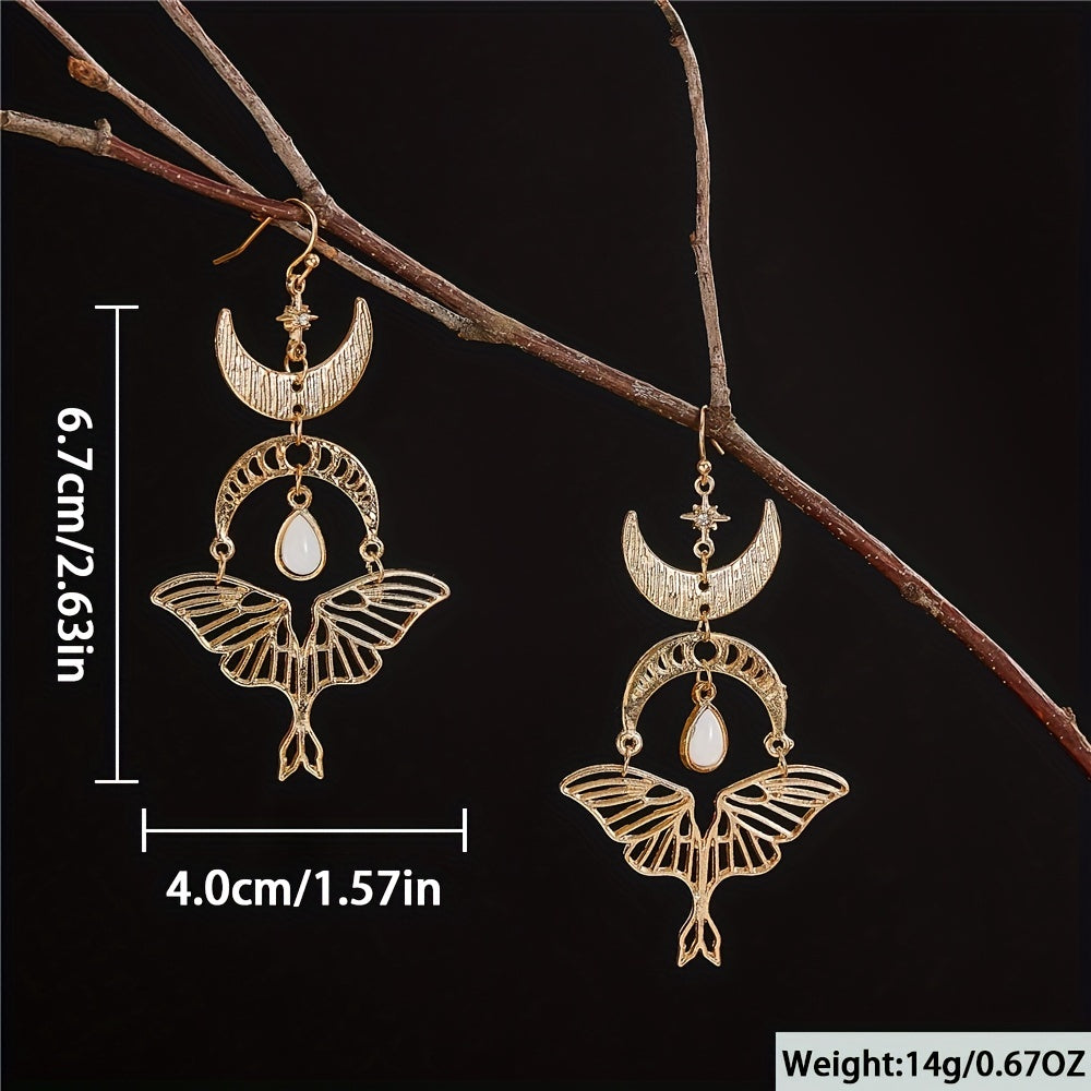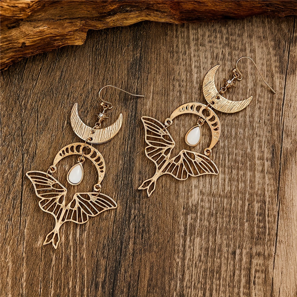 These boho earrings feature a golden hollow moon design with inlaid moonstone, perfect for adding a touch of personality to your look. They make a great gift for women who love unique jewelry.