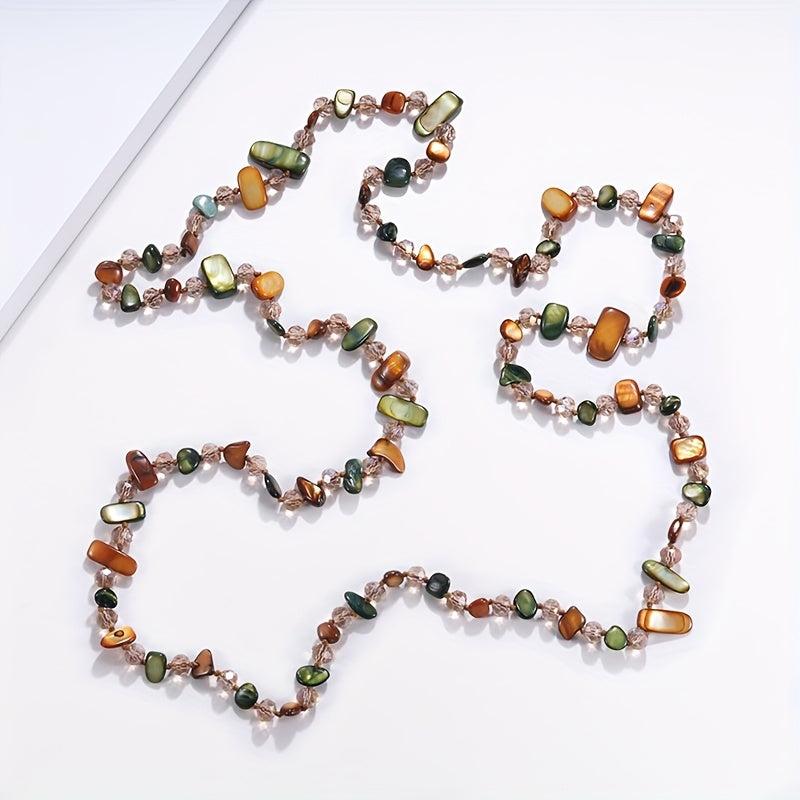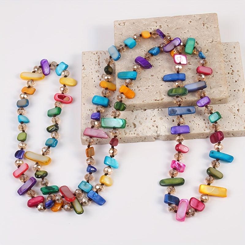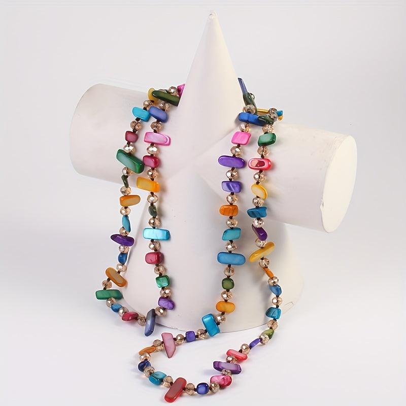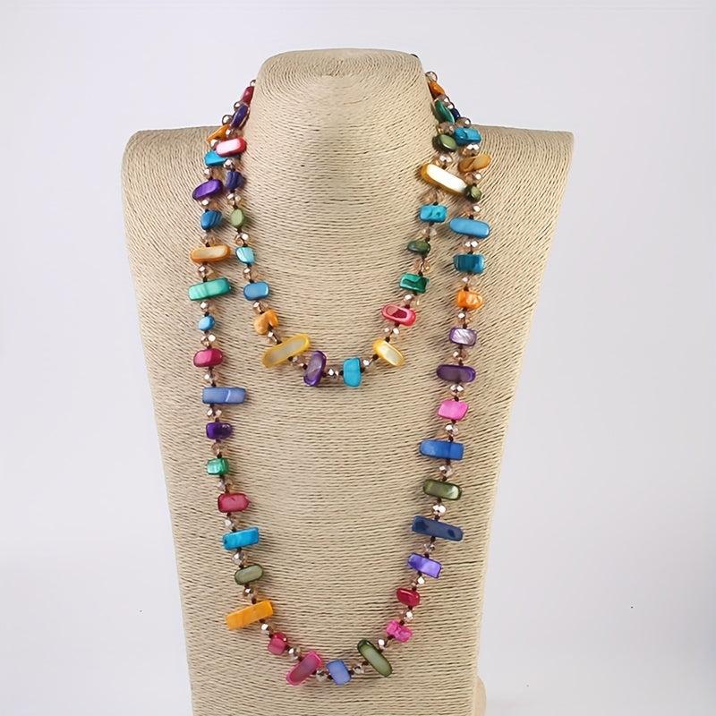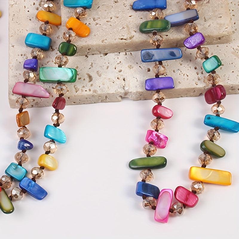 Add a pop of color and bohemian flair to your outfit with this multilayer necklace featuring colorful shells and glass beads. Perfect for parties or casual wear, this versatile accessory will elevate any look.