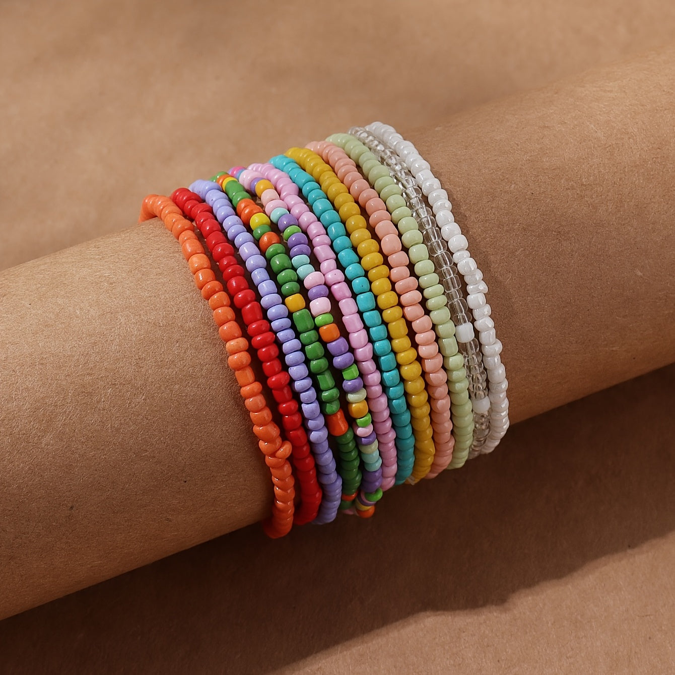 This charming boho seed beads beaded bracelet with stretch design is an ideal gift for women, wife, girls, or her on birthdays. It features a variety of colorful beads and enchanting charms to add a touch of bohemian style to any outfit.