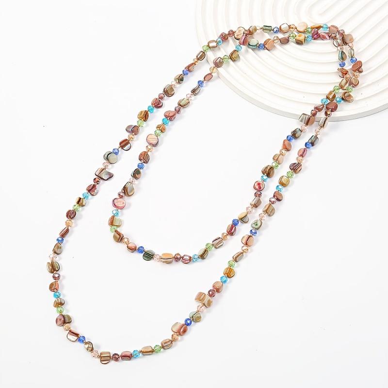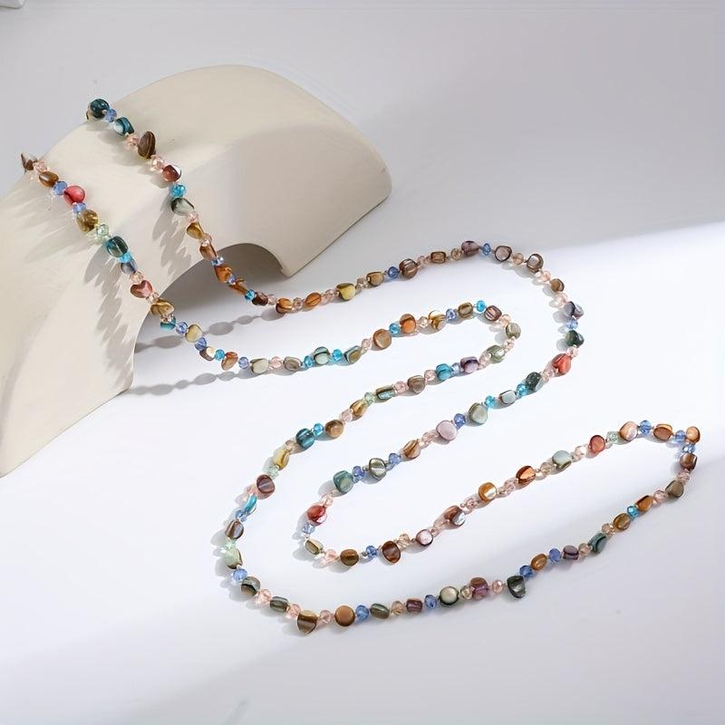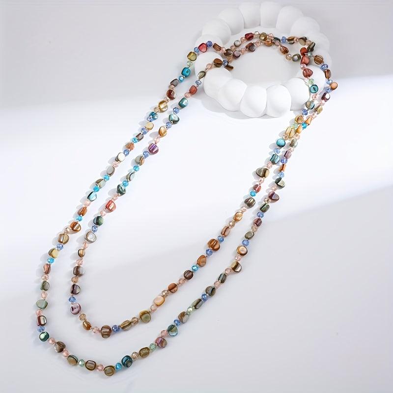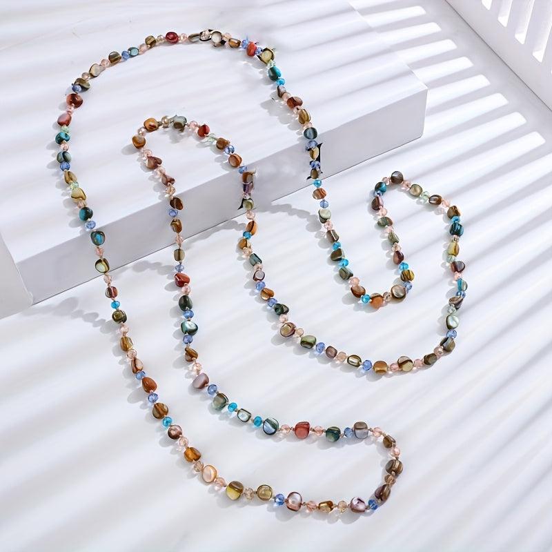 Add a touch of bohemian flair to your vacation style with this colorful shell mosaic pendant necklace. Perfect for parties and vacations.