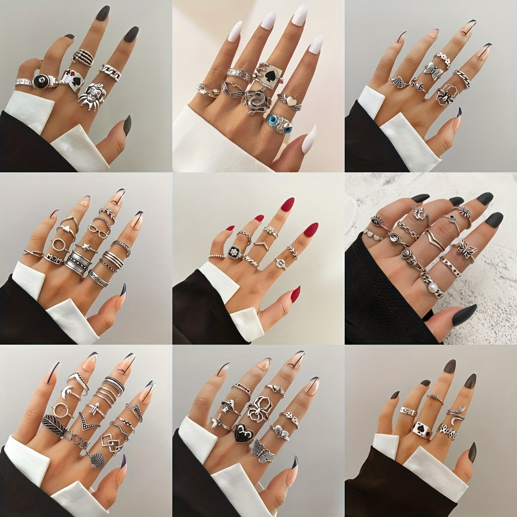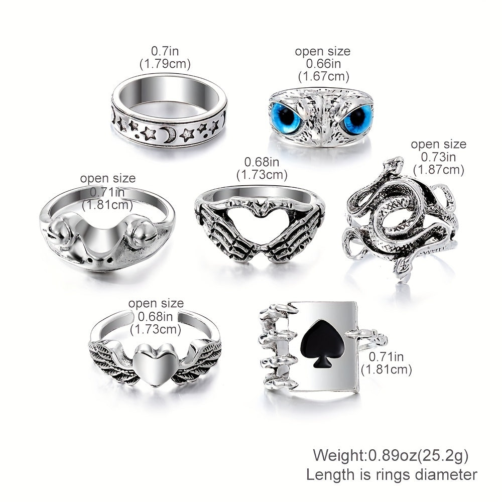These vintage boho rings feature a mix of gothic skull, snake, and eagle eye patterns, perfect for daily wear or party accessories.