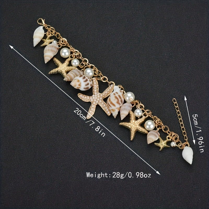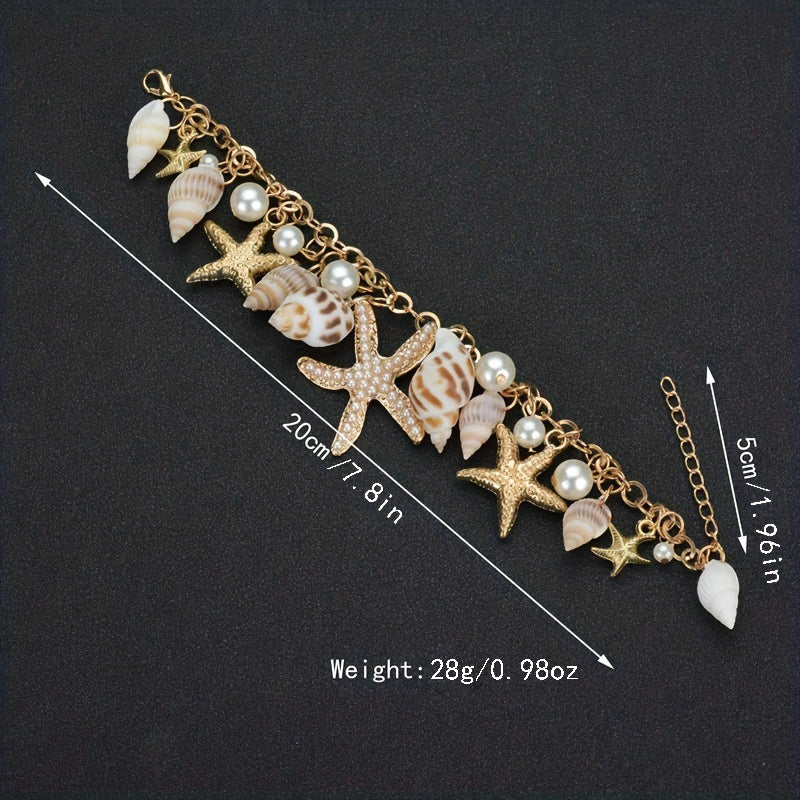 Embrace the summer vibes with this boho starfish shell bracelet, perfect for your beach vacation decor. Add a touch of beachy charm to your look!