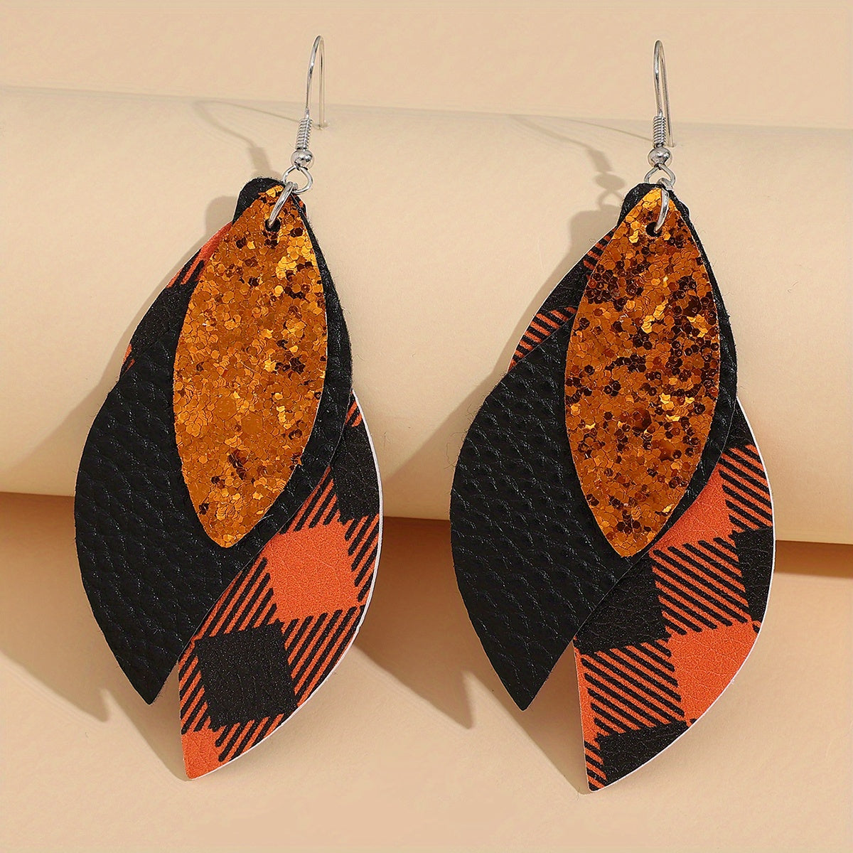 Add a touch of bohemian flair to your look with these 3-layer leaf shape dangle earrings. Made of PU leather, these earrings are perfect for adding a pop of style to any outfit. A great gift idea for any fashion-forward female.