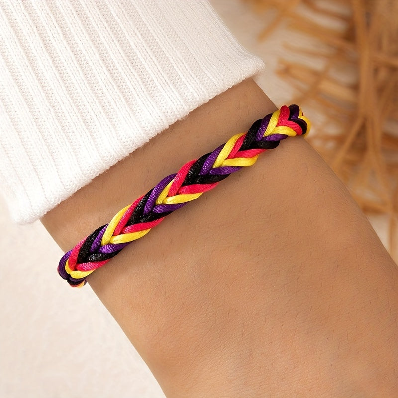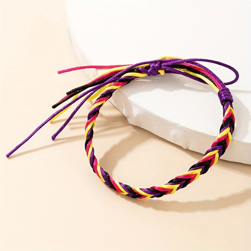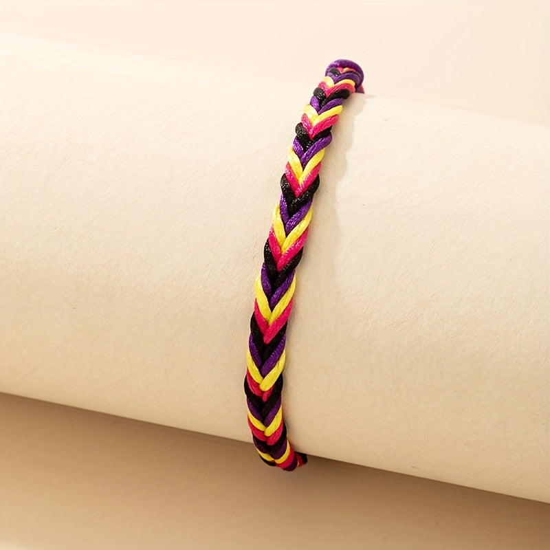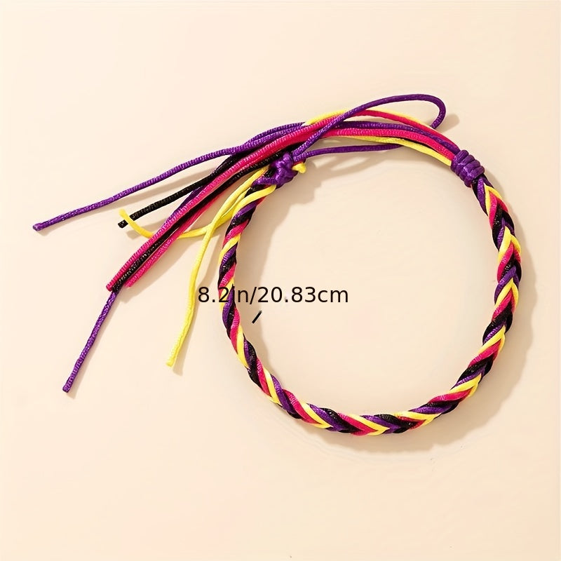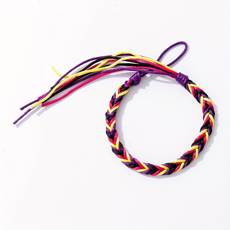 Add a touch of bohemian flair to your style with this colorful braided bracelet. Handcrafted with vibrant threads, this bracelet is the perfect accessory to adorn your wrists.