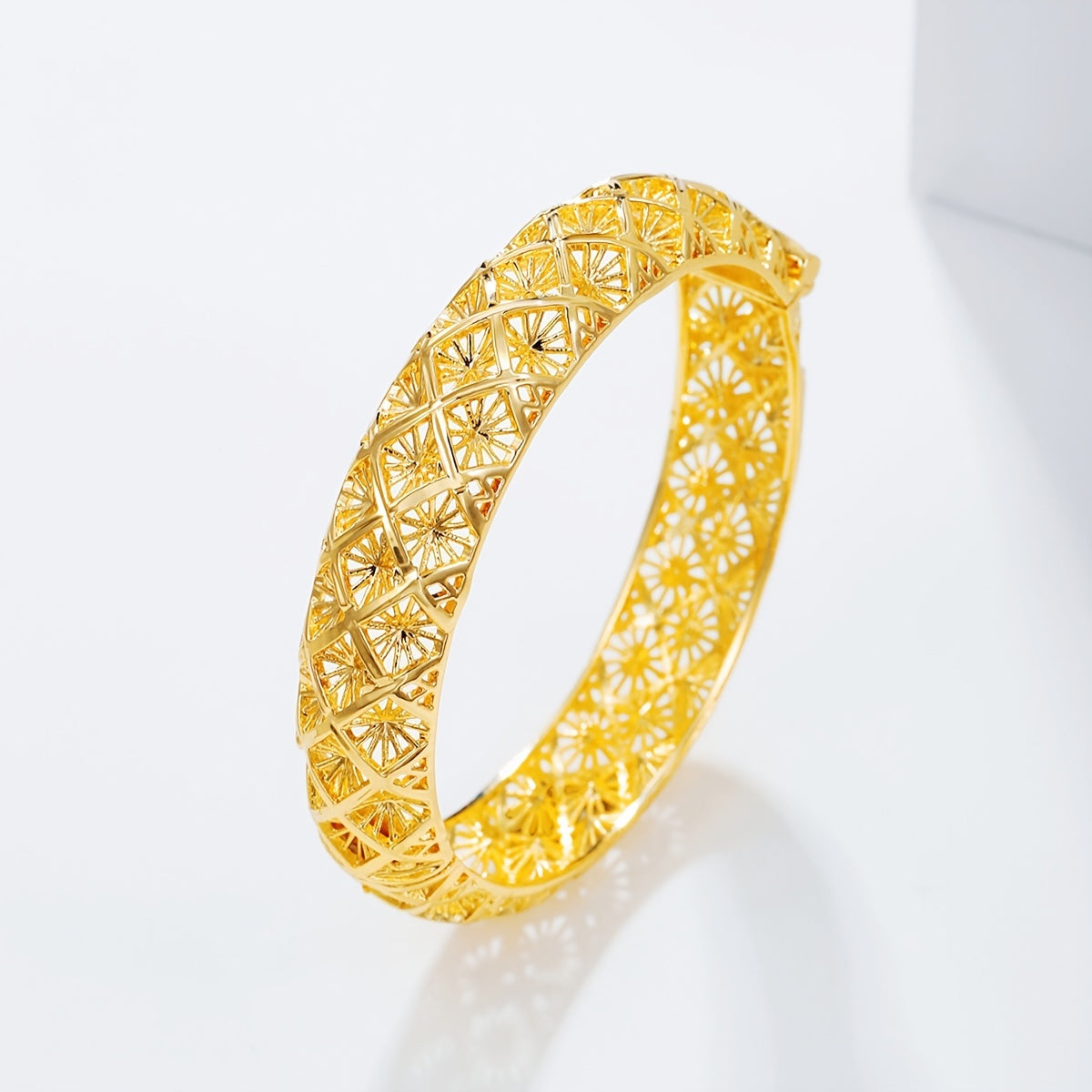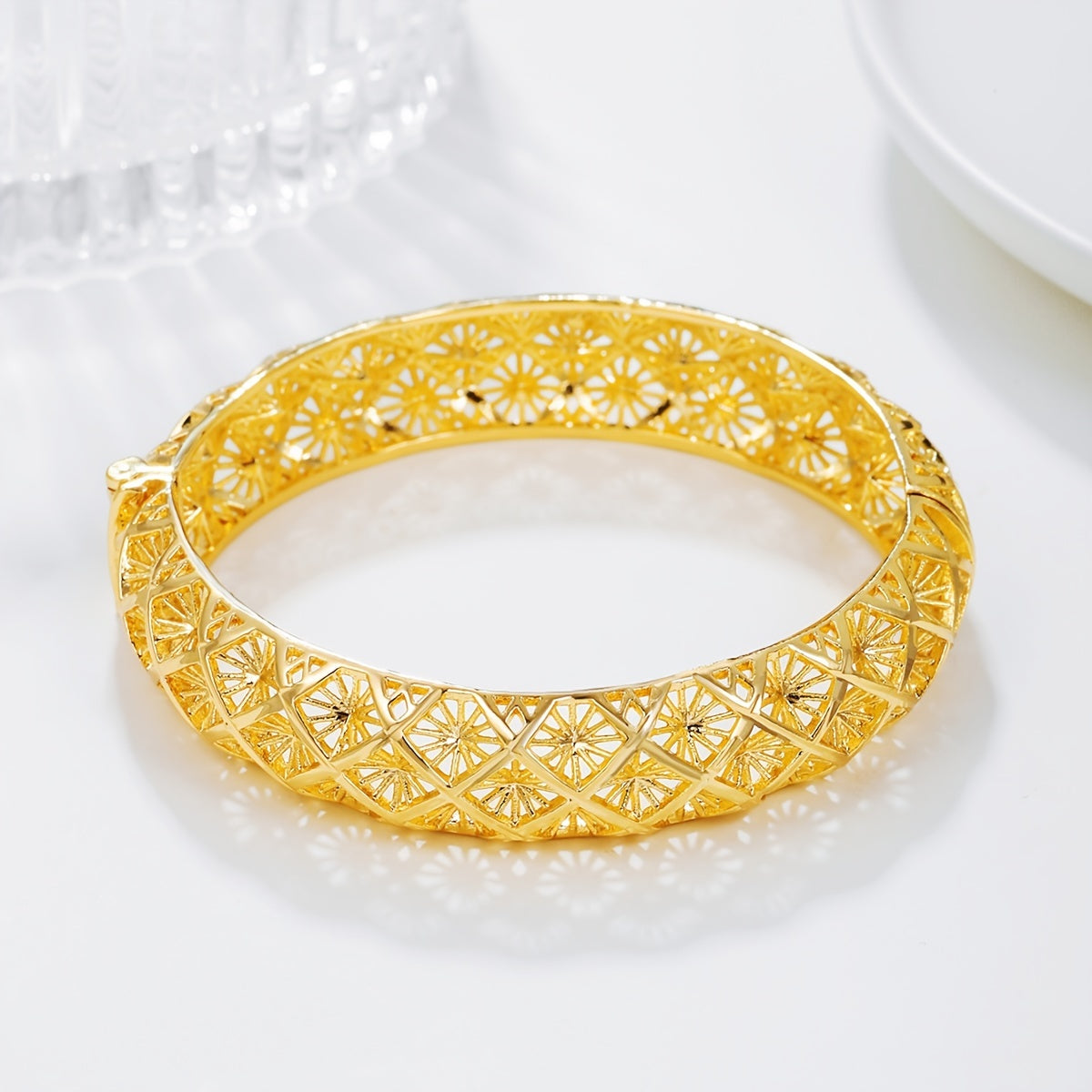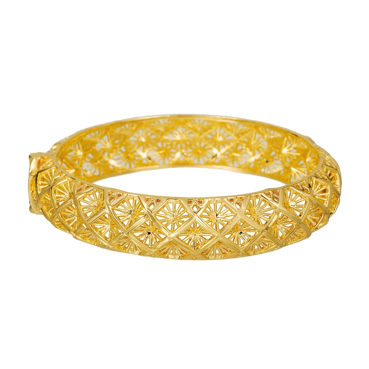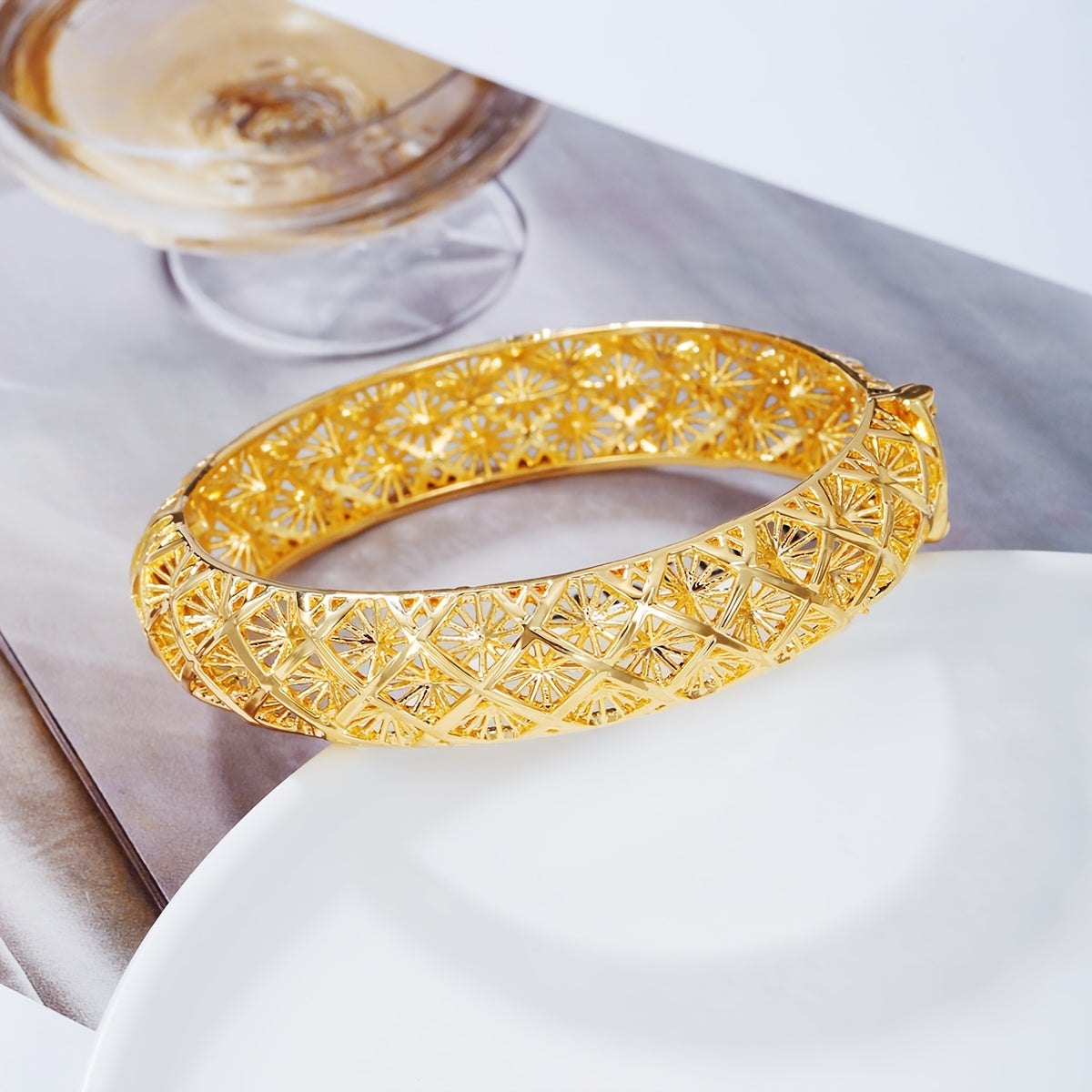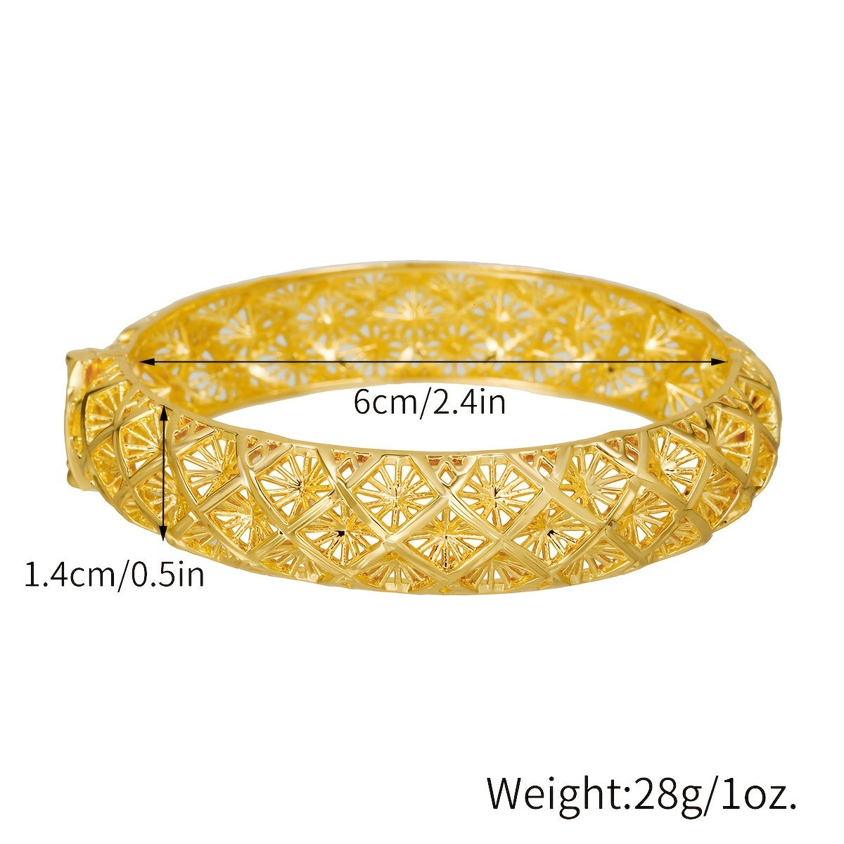 This 18K plated open bangle bracelet features a boho style design, perfect for adding elegance to wedding outfits. It can also be used as a stylish decoration for various occasions.