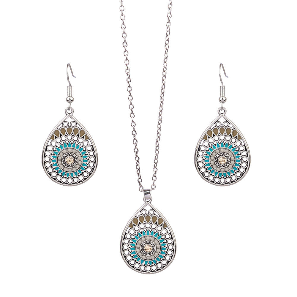 Complete your daily outfits with this boho style jewelry set, featuring 3pcs teardrop shape earrings and a matching necklace. Perfect for adding a touch of summer vacation vibe to your look.