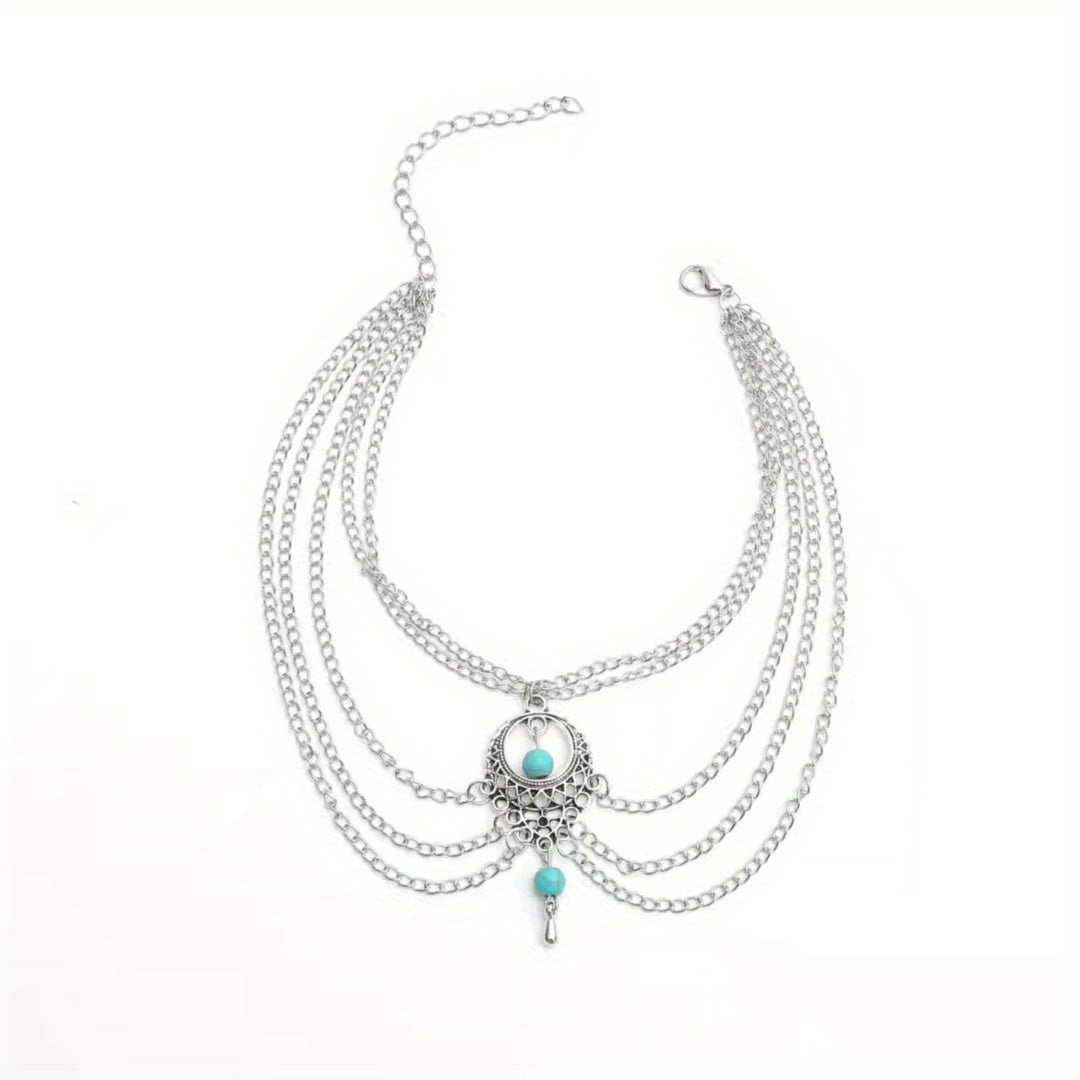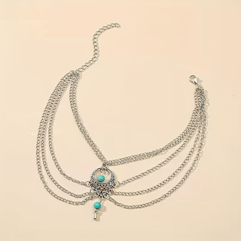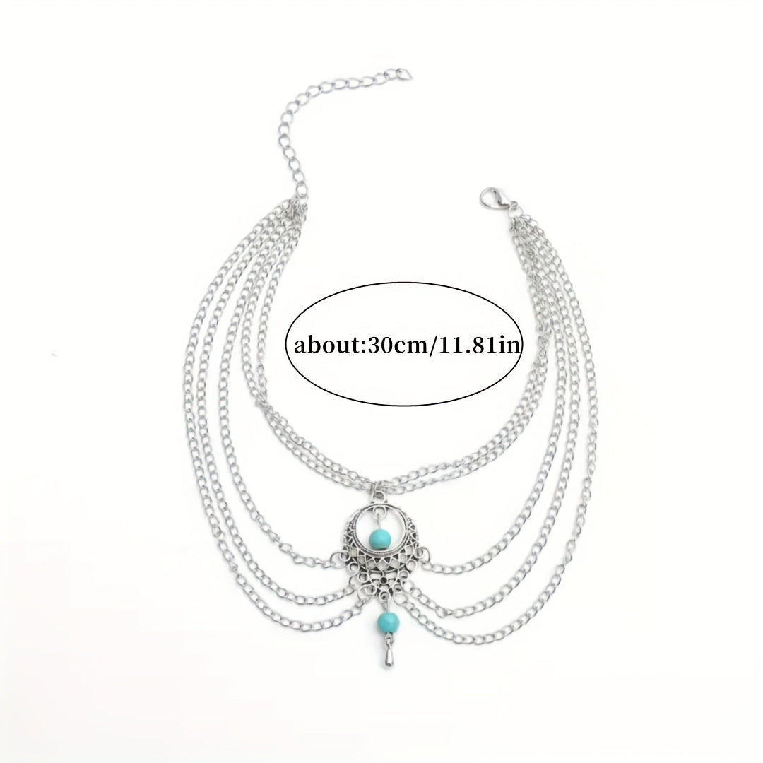 Add a touch of bohemian flair to your look with this layered chain anklet featuring geometric hollow design. Perfect for a vacation, seaside, or beach outfit.