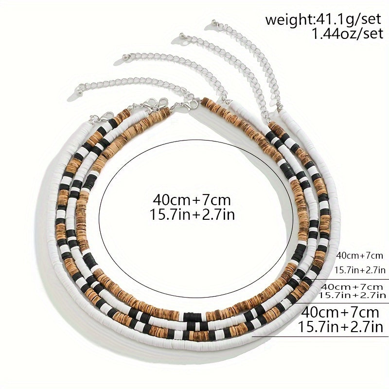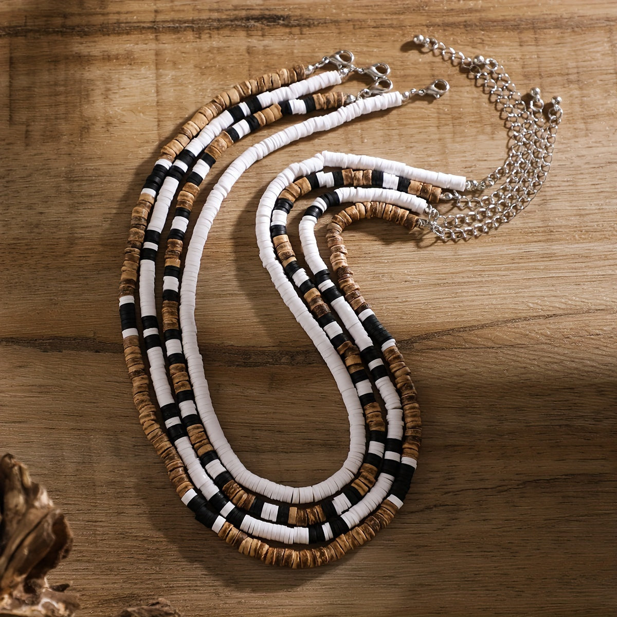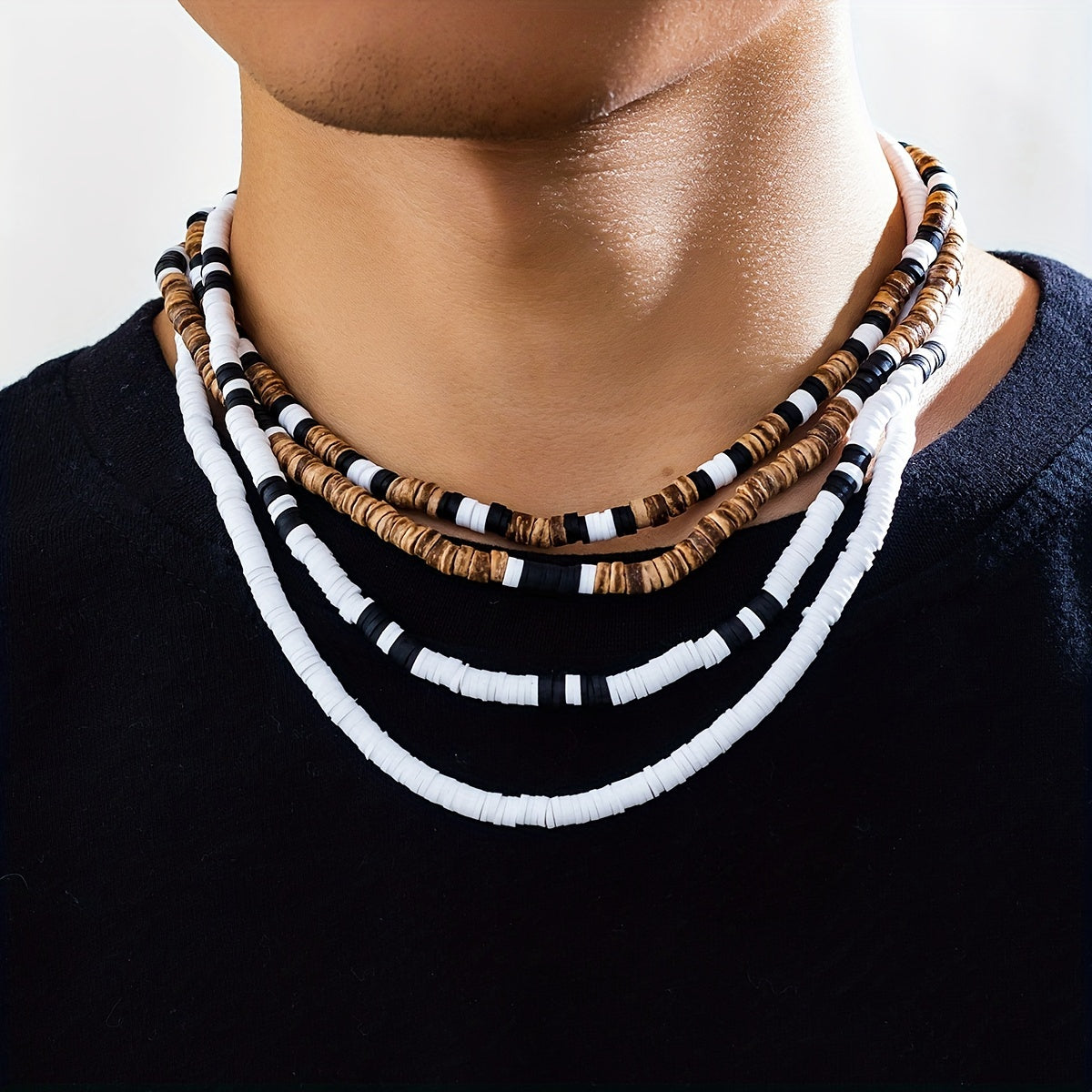 Boho Style Men's Necklace Set: Soft Pottery & Coconut Shell Beads