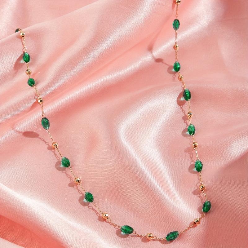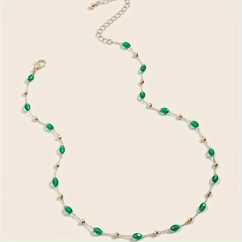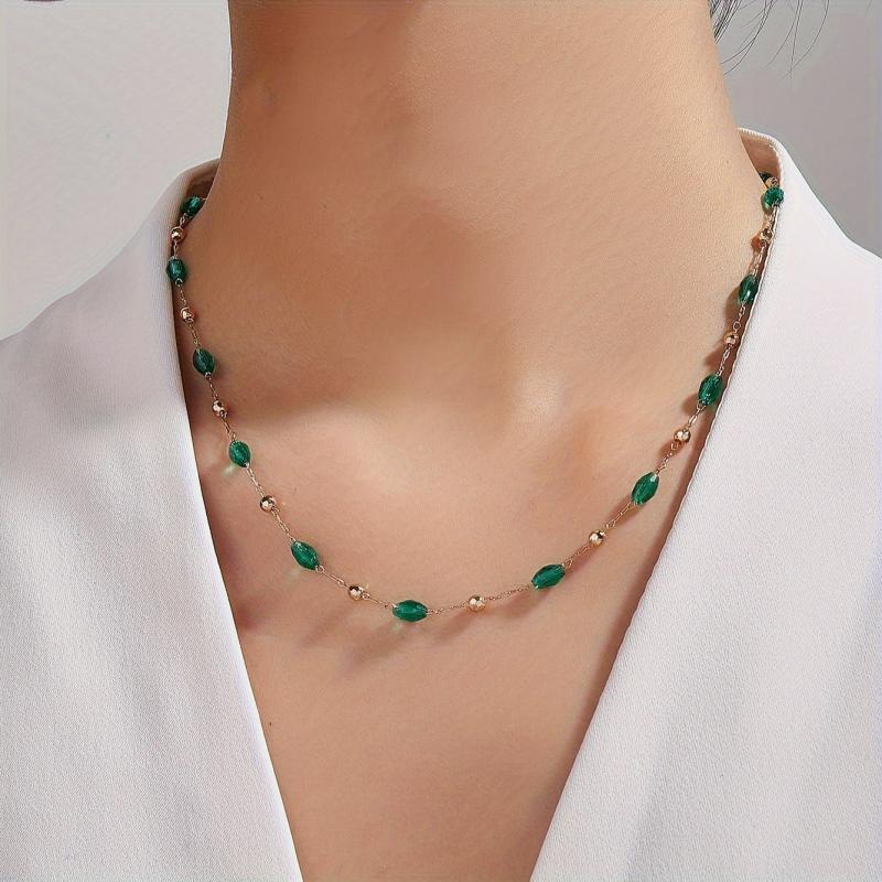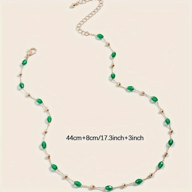 Elevate your look with this boho chic necklace featuring faceted green bead accents. Made from high-quality zinc alloy with 14K golden plating, this clavicle chain is perfect for daily wear.